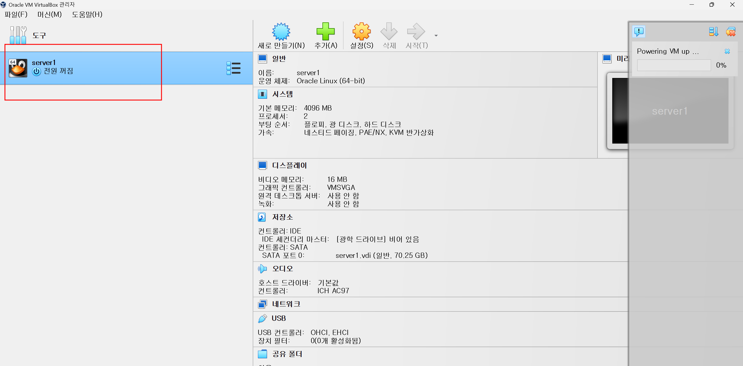 #16. Hard ware disk 를 70GB 로 설정합니다. 오라클 권장사항은 100GB 입니다.