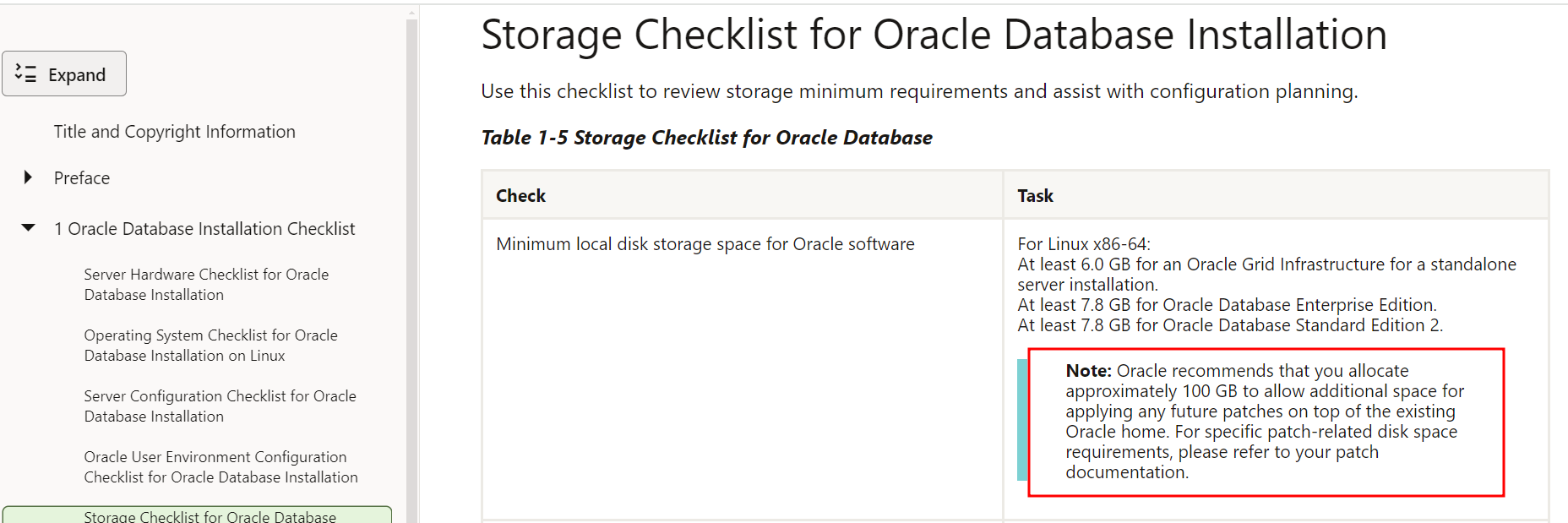오라클 권장사항은 100GB 입니다. 여유공간이 없다면 70GB 로 설치하세요.