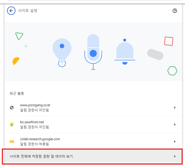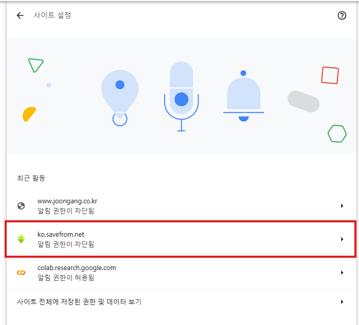 Re: 유튜브 영상 다운 사이트 광고 뜰 경우 크롬 설정에서 삭제 및 알림 차단 작성자19기_이동근|작성시간24.10.29|조회수115 목록 댓글 0 글자크기 작게가 글자크기 크게가 설정 > '콘텐츠' 검색 > 사이트 설정해당 이름 찾아서 삭제알림 차단사이트 설정 > 해당 사이트 들어가서해당 사이트 알림 차단 다음검색 현재 게시글 추가 기능 열기 북마크 공유하기 신고 센터로 신고 댓글 댓글 0 댓글쓰기 답글쓰기 댓글 리스트