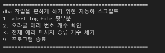 print('2. 오라클 에러 번호 개수 확인')