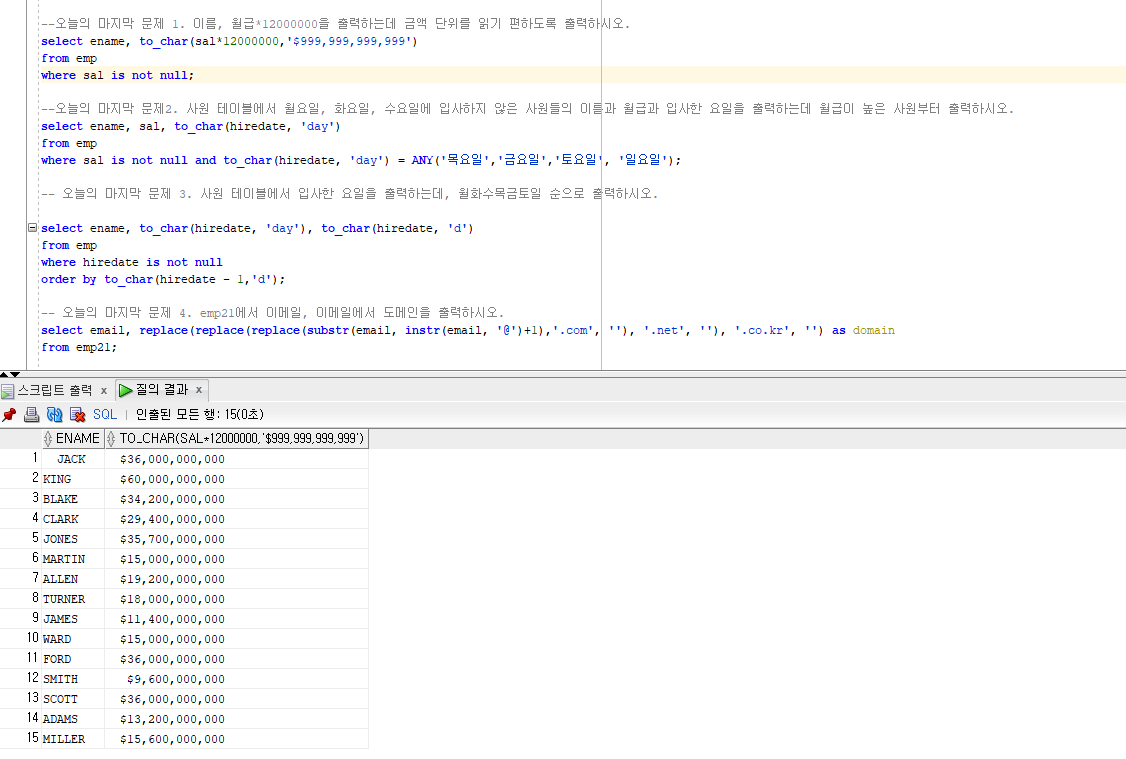 Re: 오늘의 자습시간 문제 2025년 12월 12일 작성자22기_오상민|작성시간25.12.12|조회수5 목록 댓글 0 글자크기 작게가 글자크기 크게가 order by sal desc; 다음검색 현재 게시글 추가 기능 열기 북마크 공유하기 신고 센터로 신고 댓글 댓글 0 댓글쓰기 답글쓰기 댓글 리스트