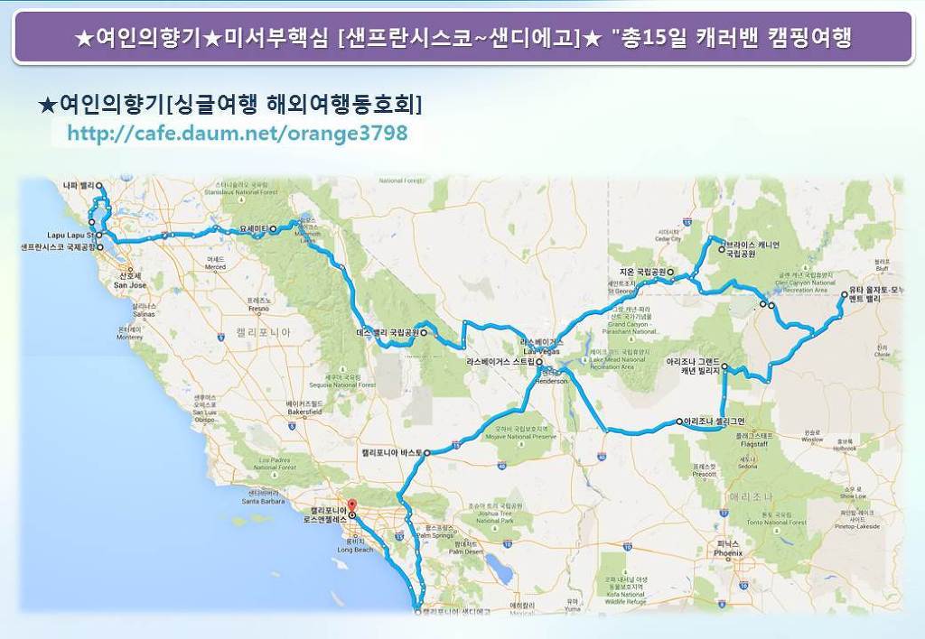 ★여인의향기 ★미서부핵심[샌프란시스코.샌디에고.나파벨리와이너리]★ 총15일 "캠핑카여행" 일정표