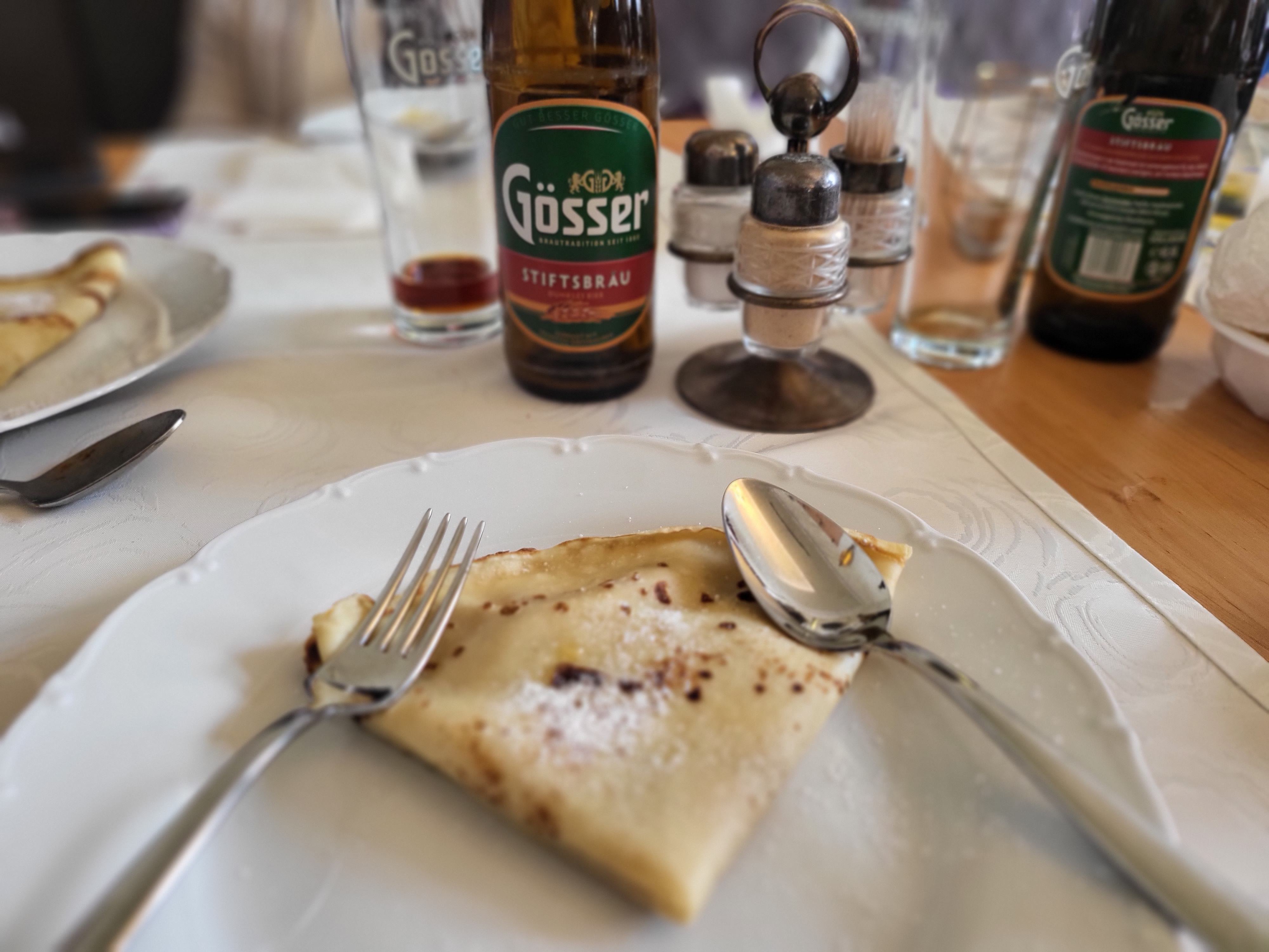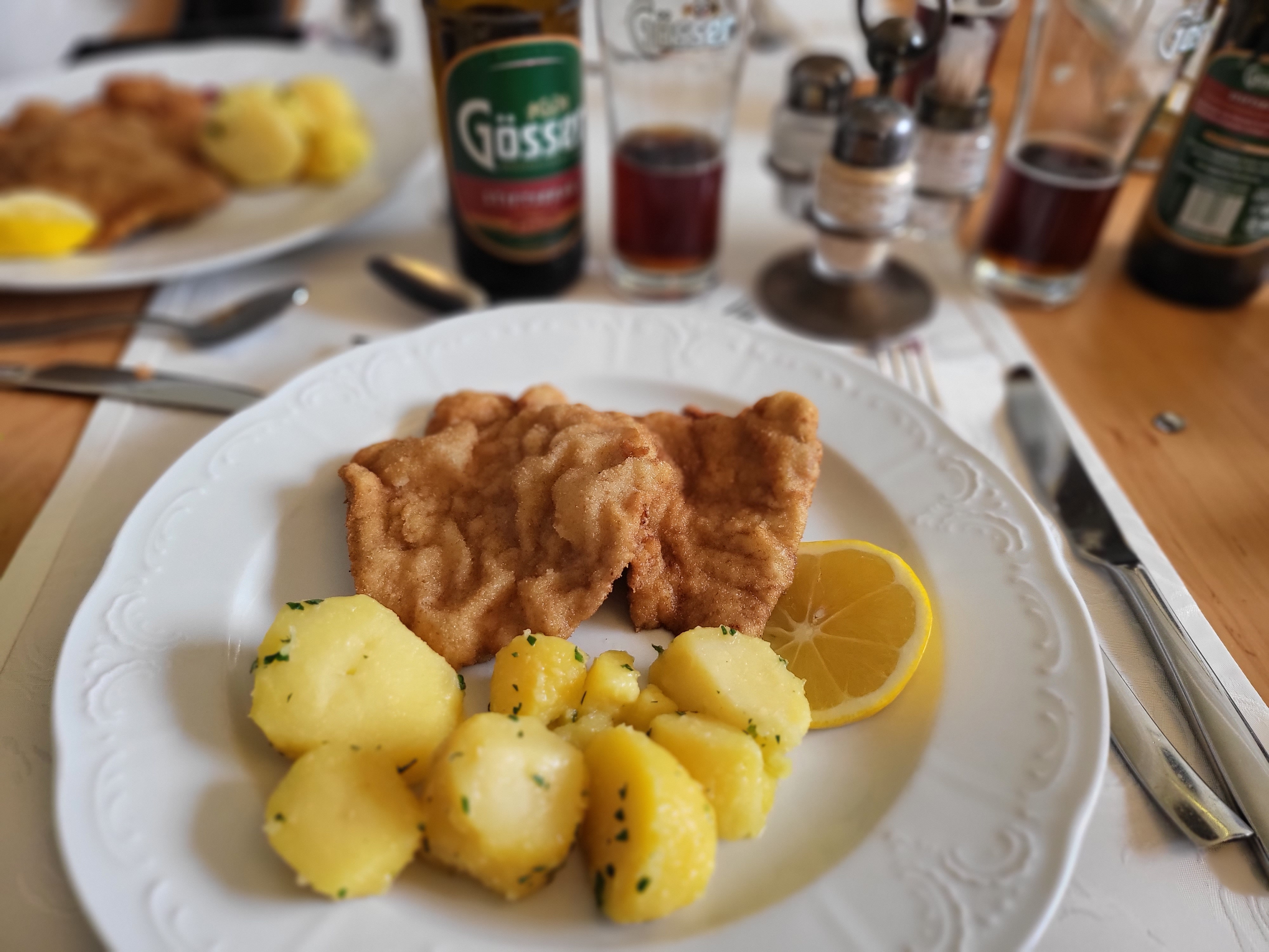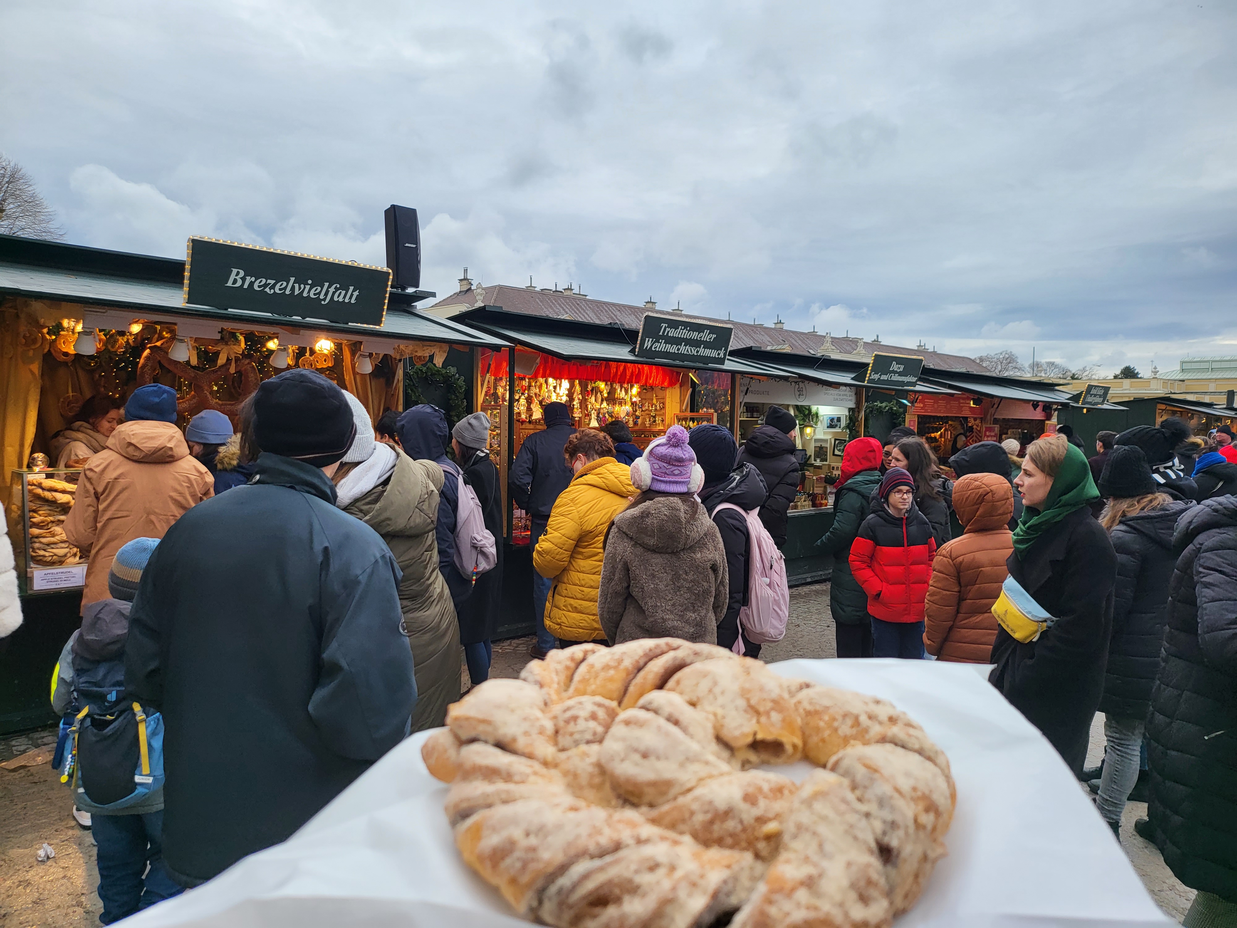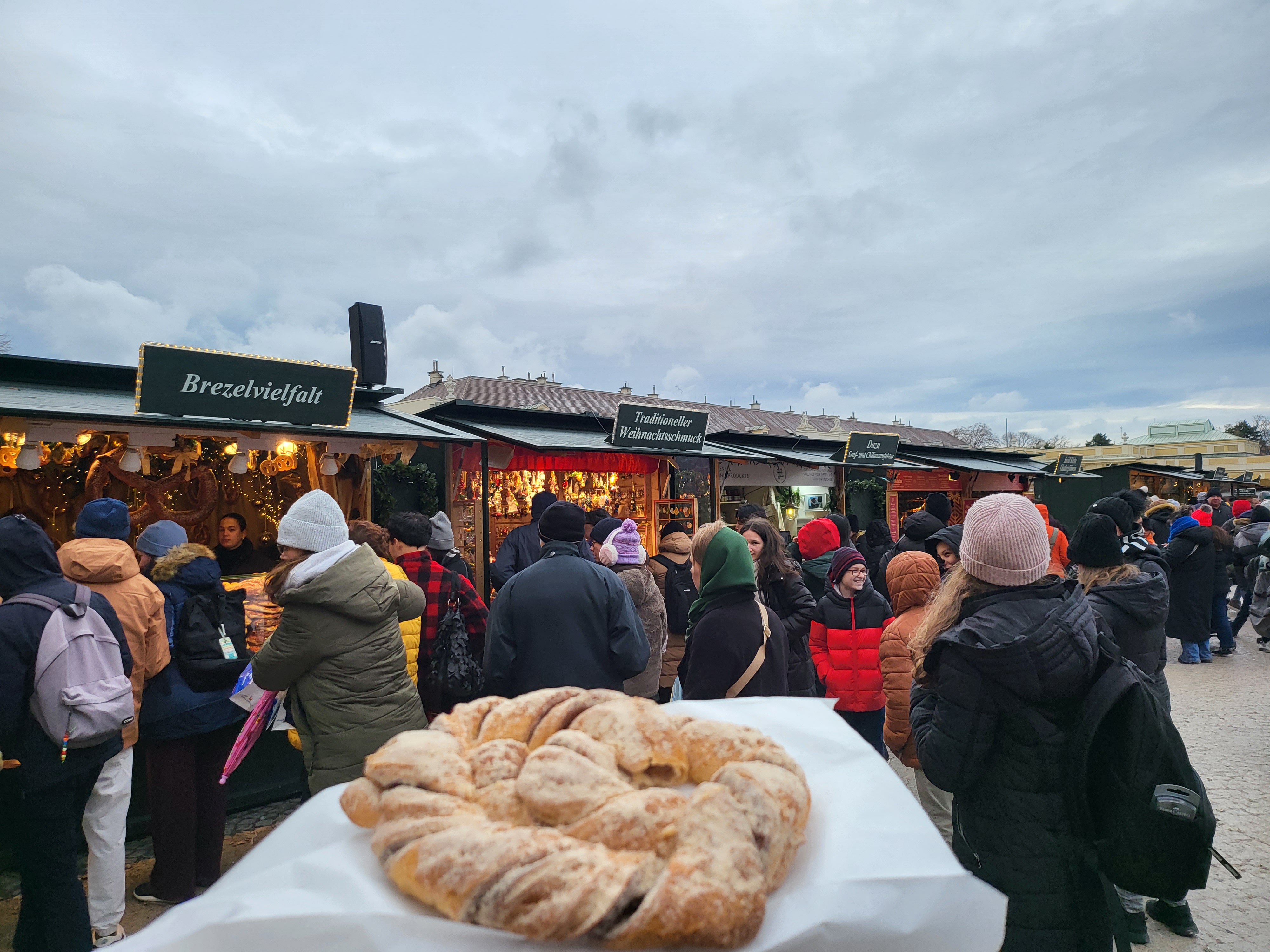 궁전 뒷뜰에서 자그맣게 크리스마스 마켓이 열려있었습니다. 출출해서 간식을 하나 사먹었는데, 진짜~ 맛있었어요. 이름은 모르겠는데, 생긴거는 프레츨처럼 생겨서 맛은 패스츄리랑 크로와상 섞은 맛이었어요. 또 먹고 싶당... 쉔부른 궁전 바로 앞에 레스토랑에서 슈니첼을 마지막 식사로 하고 오스트리아를 떠났습니다. 이 곳도 평점도 좋고 아주 유명한 식당이었어요!