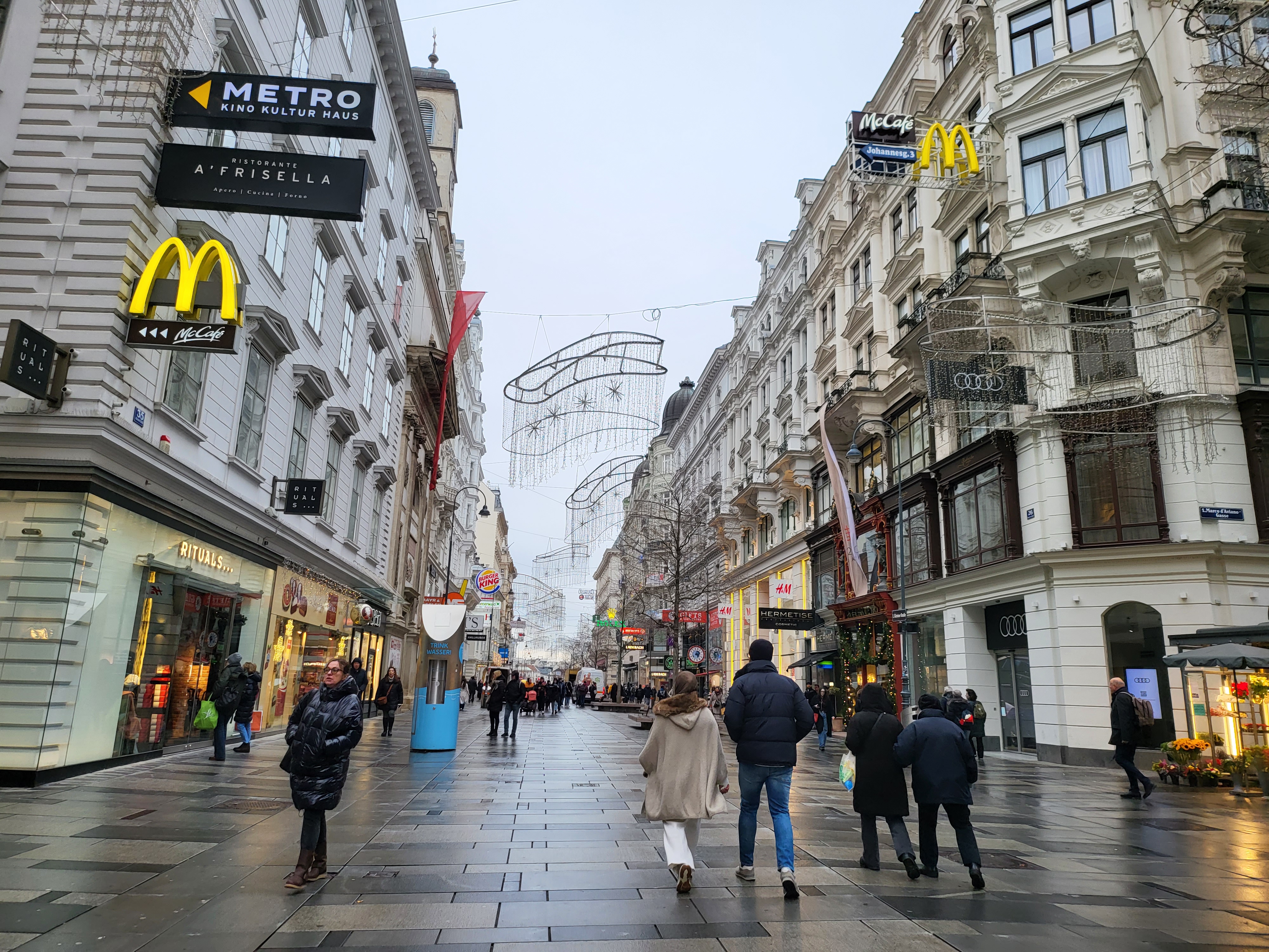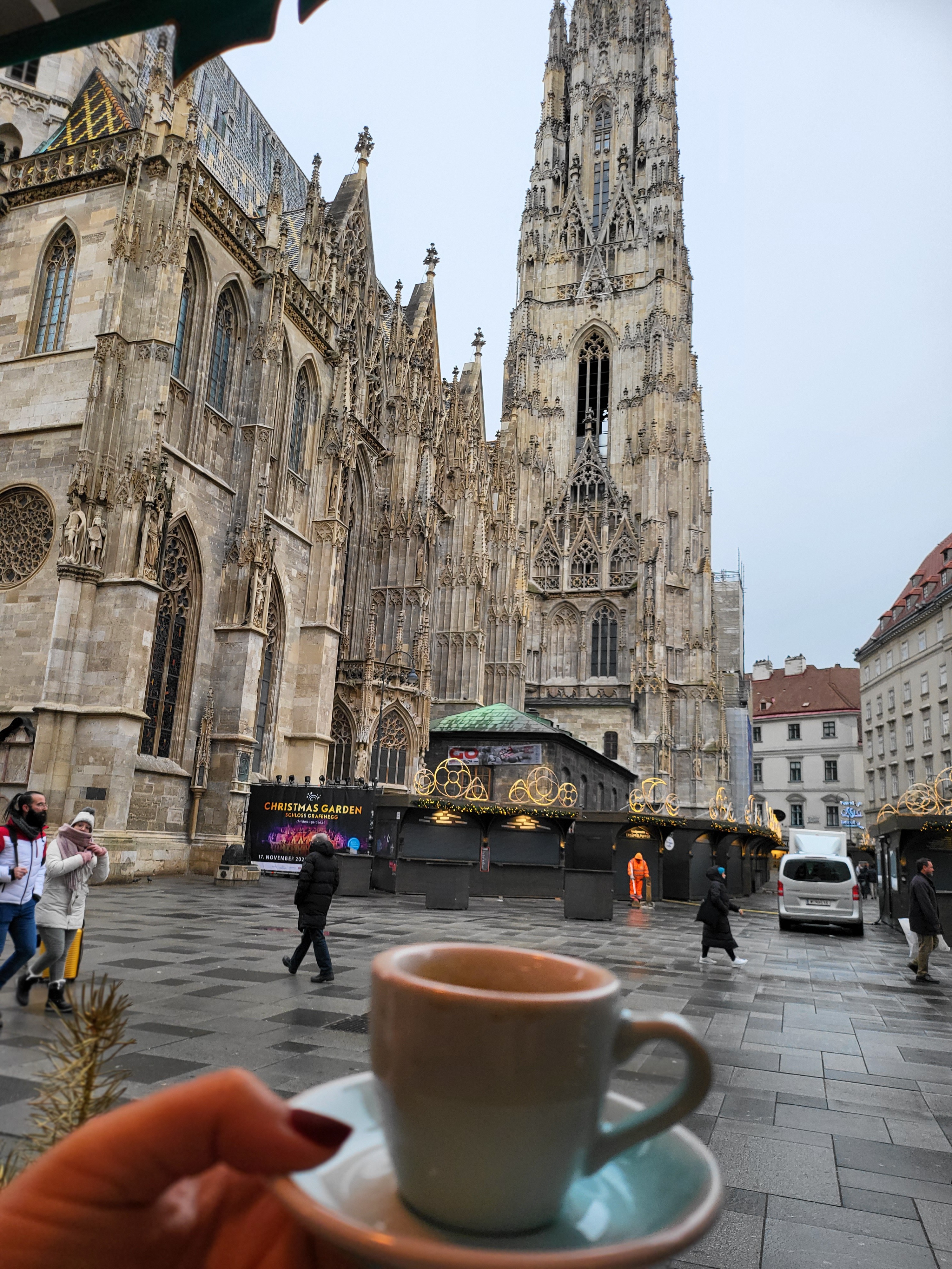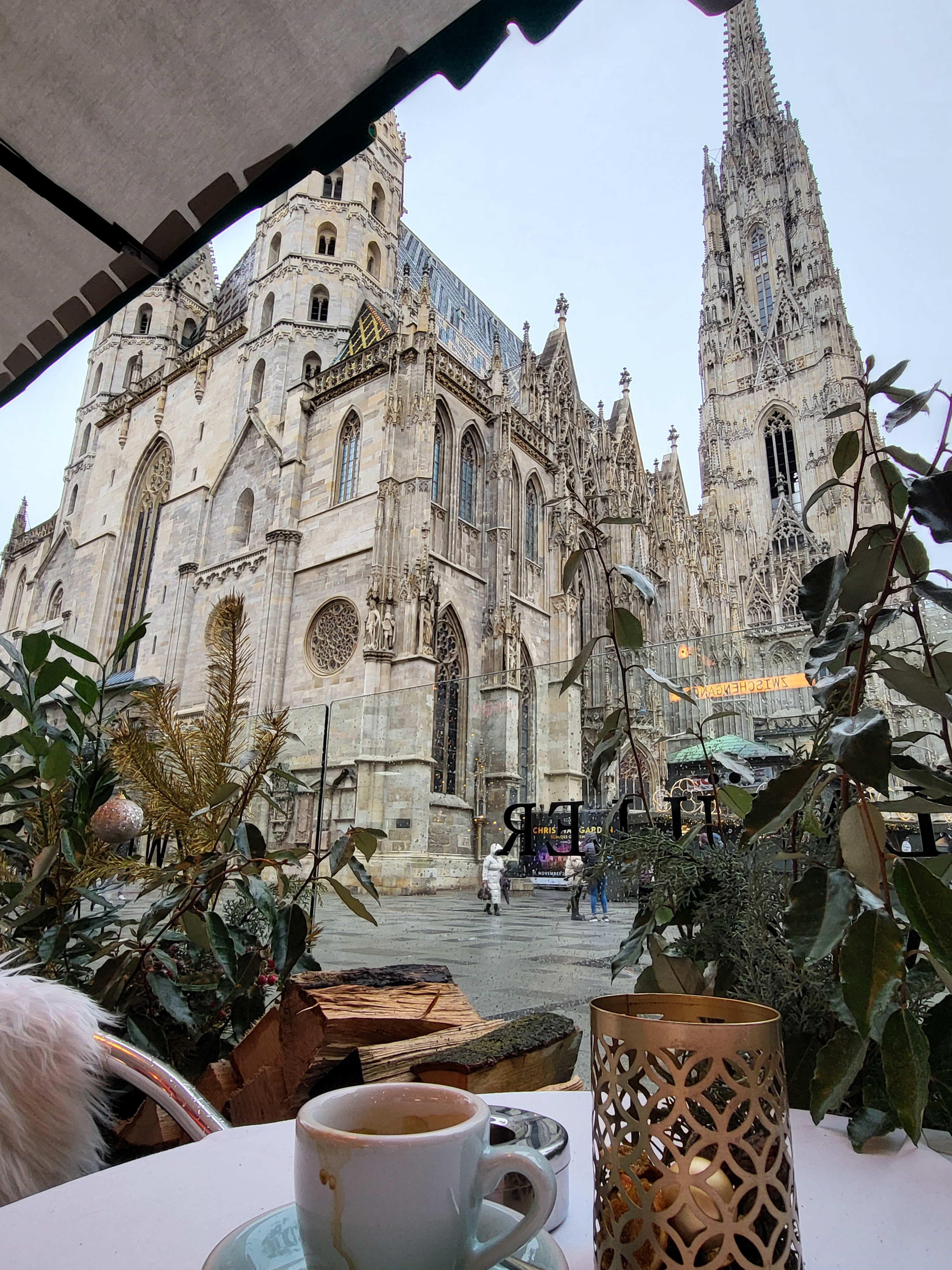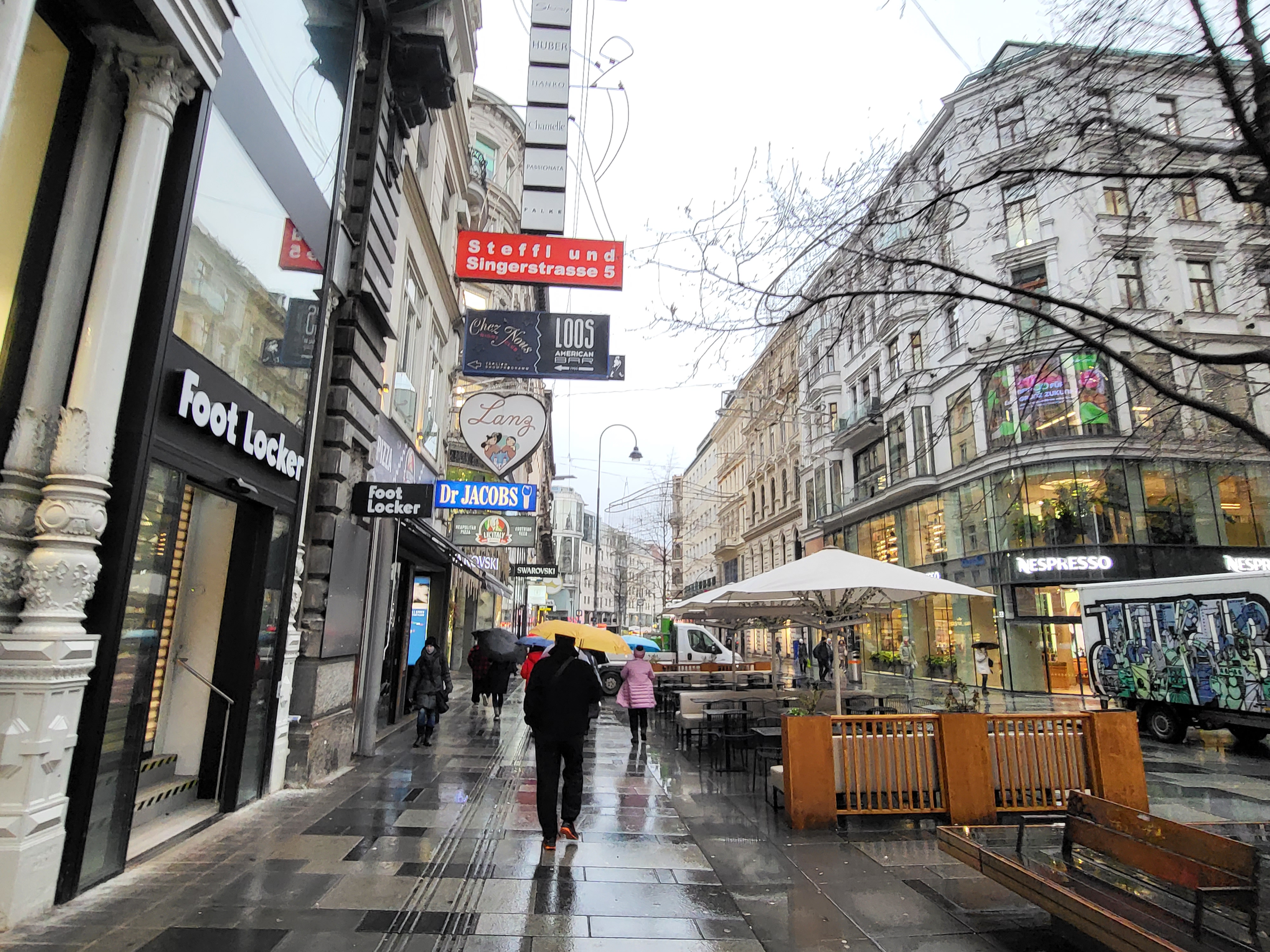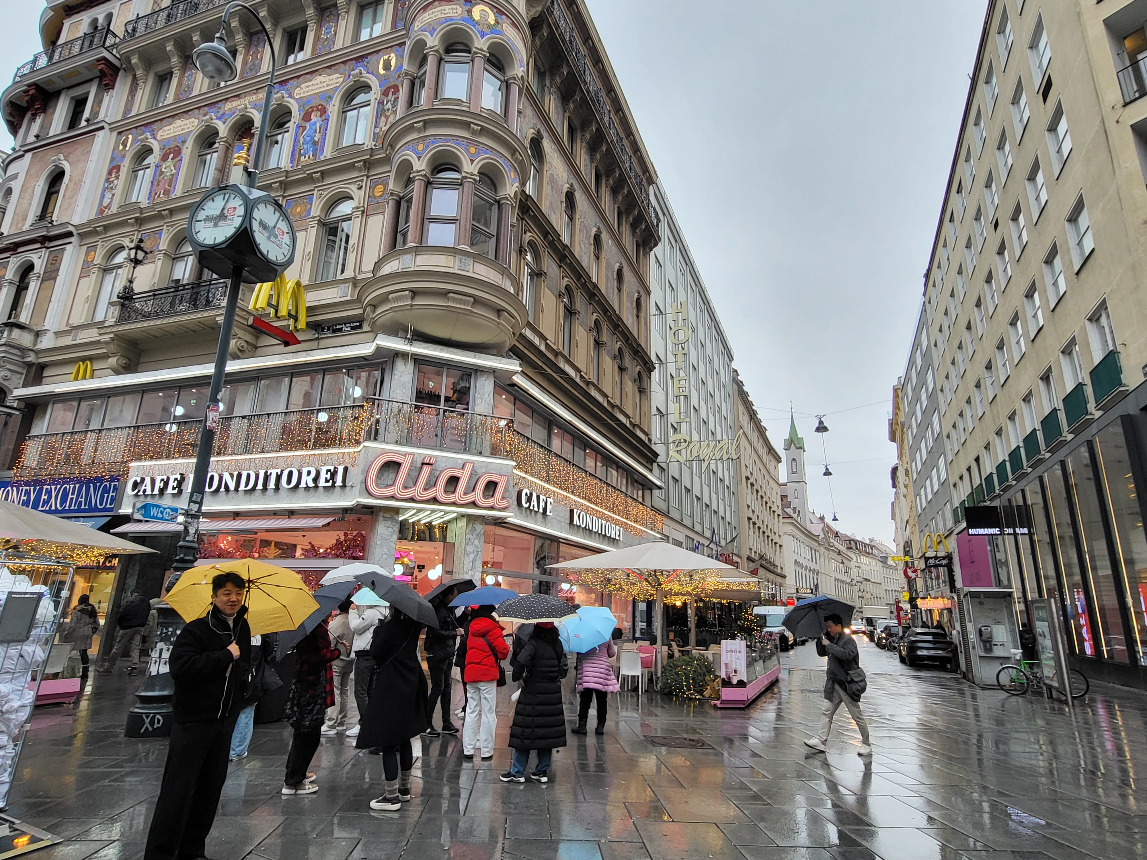 슈테판 성당이 가장 잘 보이는 야외 까페에서 에스프레소를 한잔 시켰습니다. 비오는 날 아침 비엔나에서 모닝커피라니요..매일매일이 비현실적입니다. 우리는 비 맞으면서 사진찍고, 수다떨고, 쇼핑도 하고 그렇게 한참을 비엔나 부띠끄 거리를 걸었어요. 비도 더 많이 내리고 바람도 더 많이 부네요. 얼른 쉔부른 궁전으로 자리를 옮겼습니다.