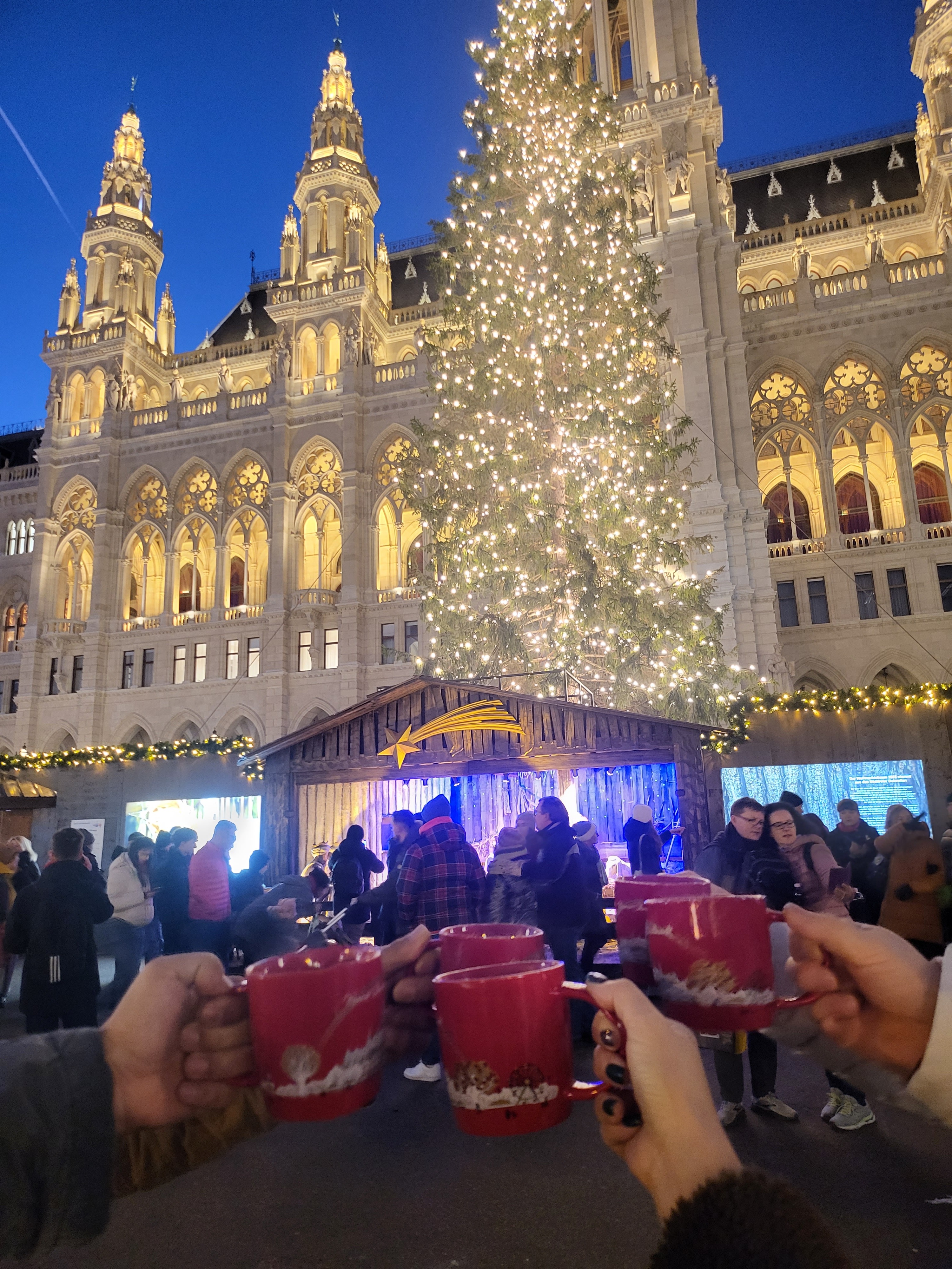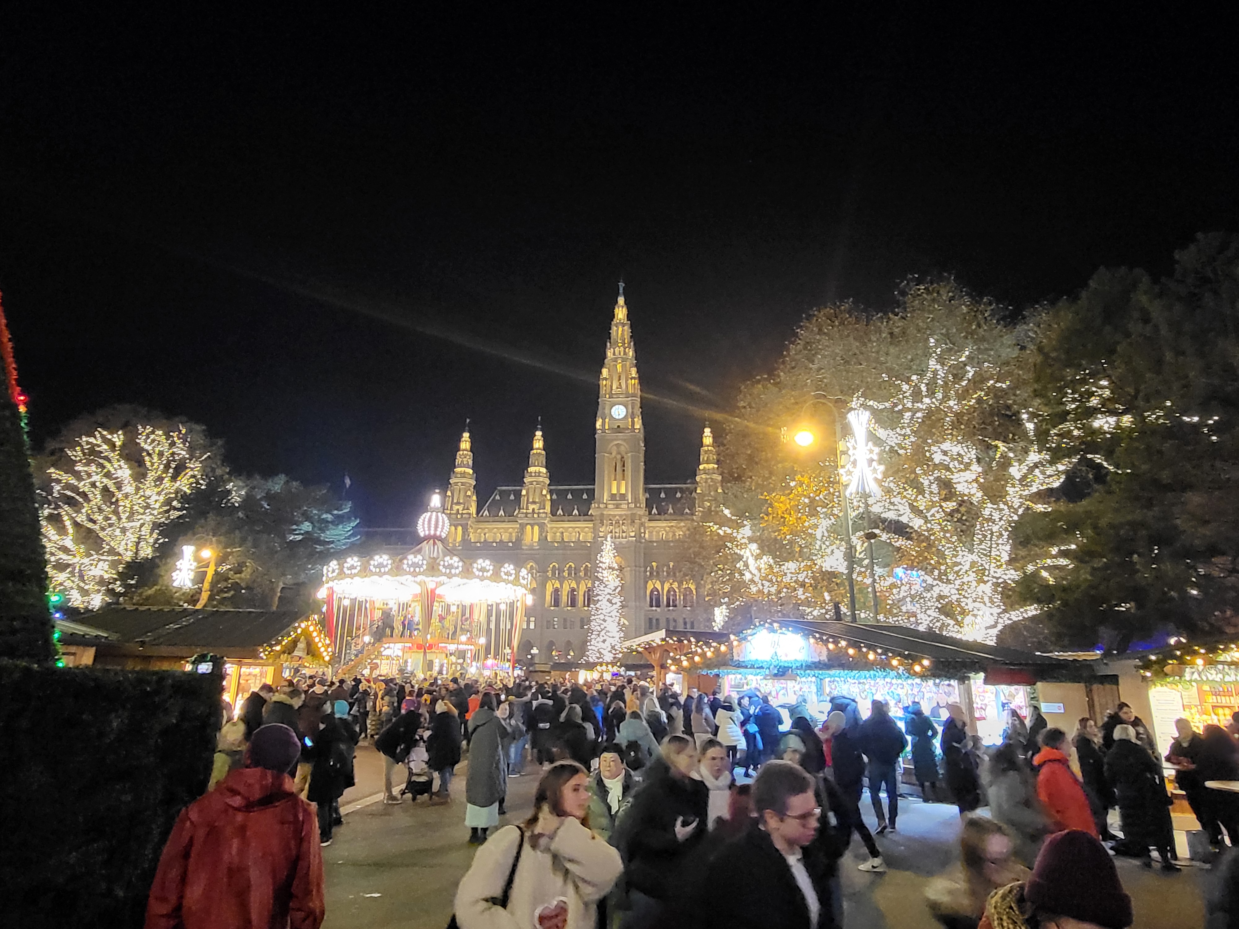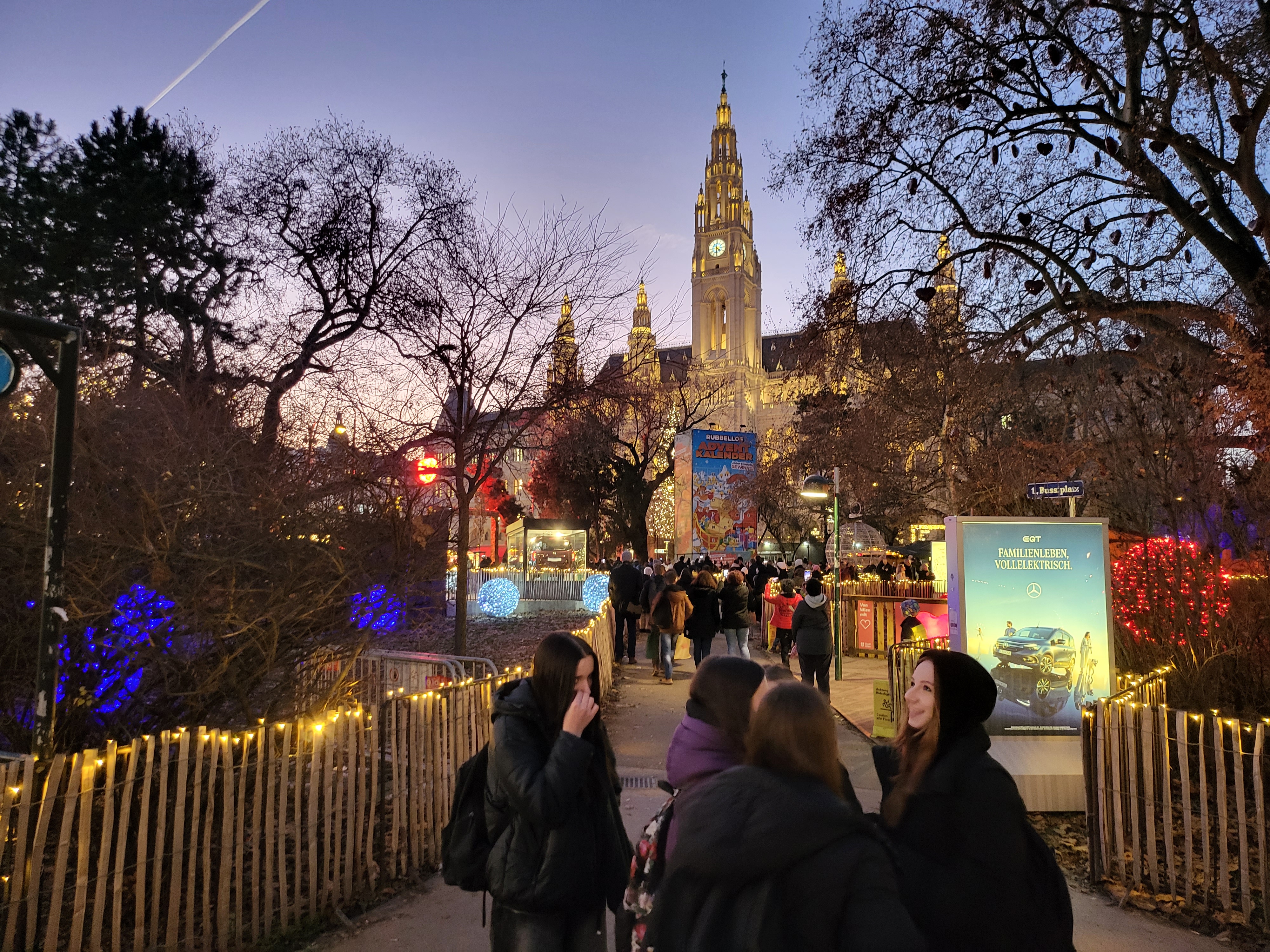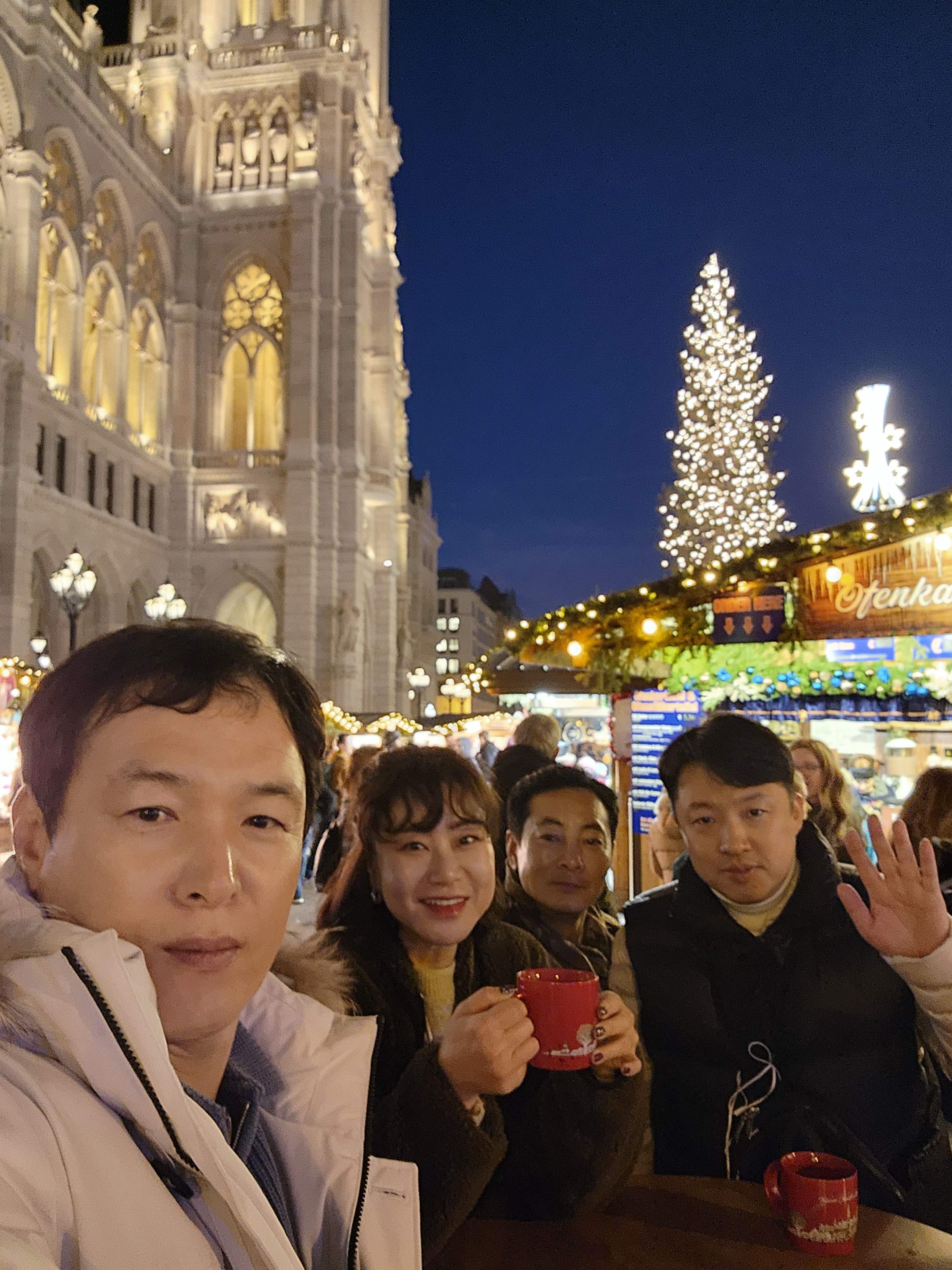 해가 진 후의 비엔나는 너~무 로맨틱하고 아름다웠습니다. 비엔나 크리스마스 마켓은 뉘른베르크보다 생기발랄한 분위기였어요. 온통 조명으로 장식된 비엔나 시청사와 거대한 크리스마스 트리, 오색현란한 조명, 놀이기구와 아이들 웃음소리, 따뜻하고 향긋한 뱅쇼... 여기는 천국일까요?