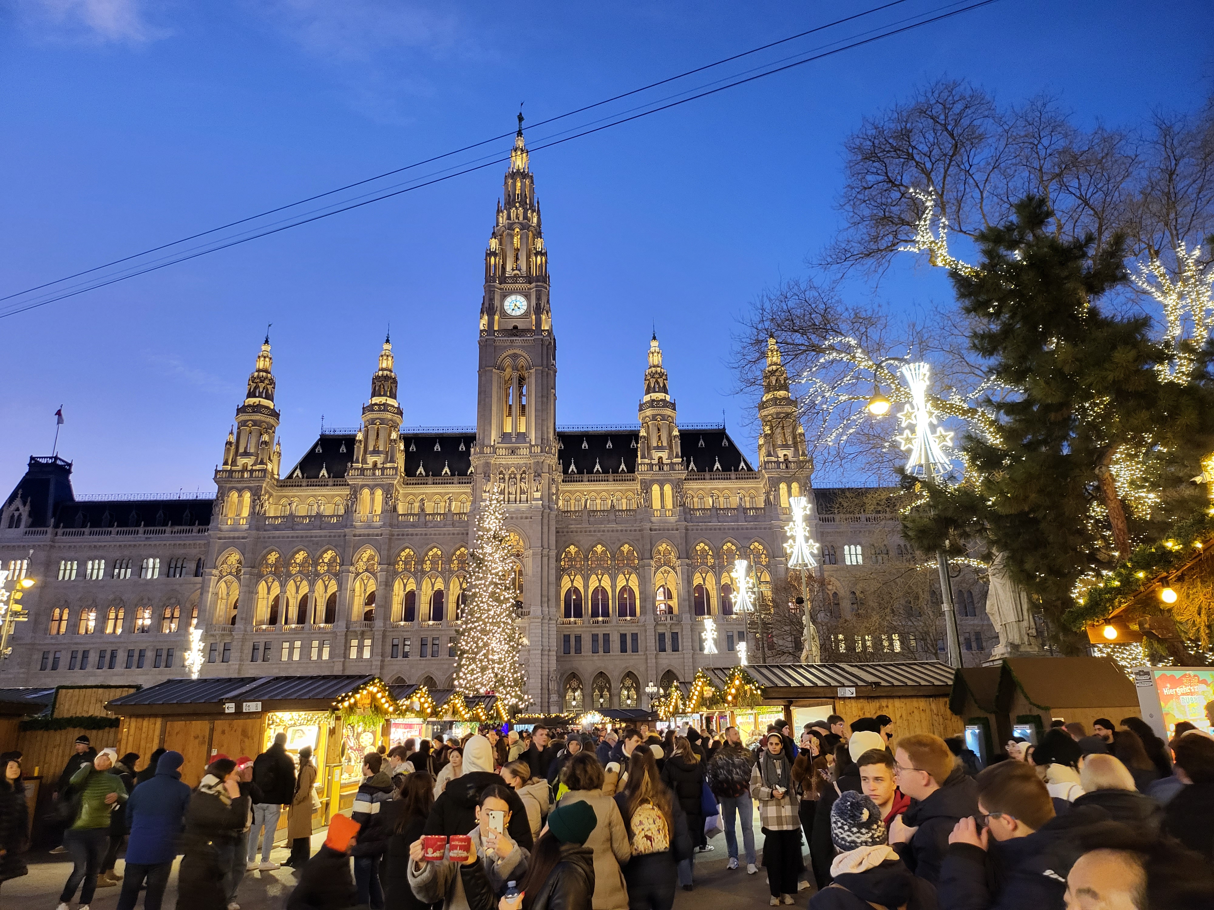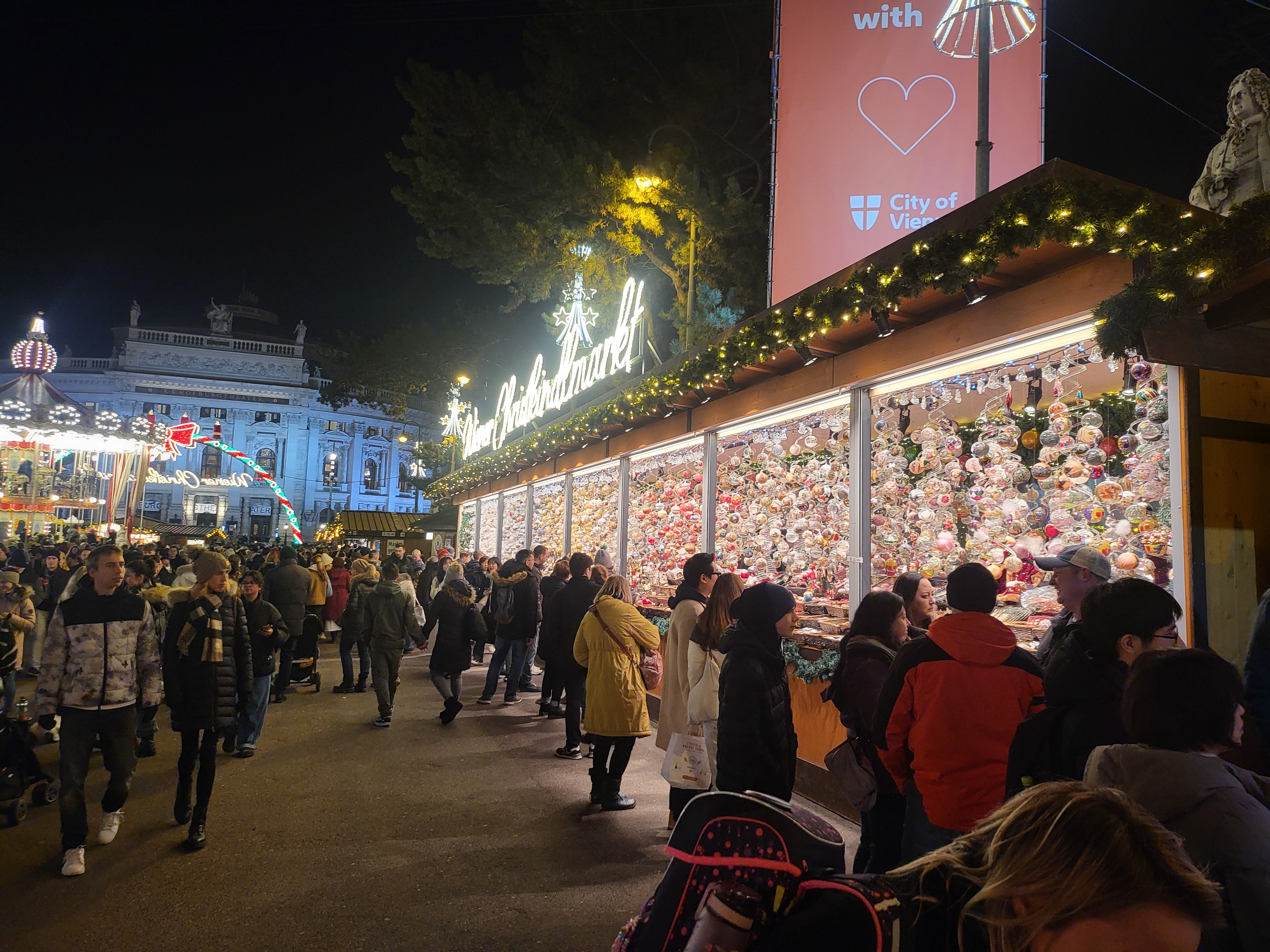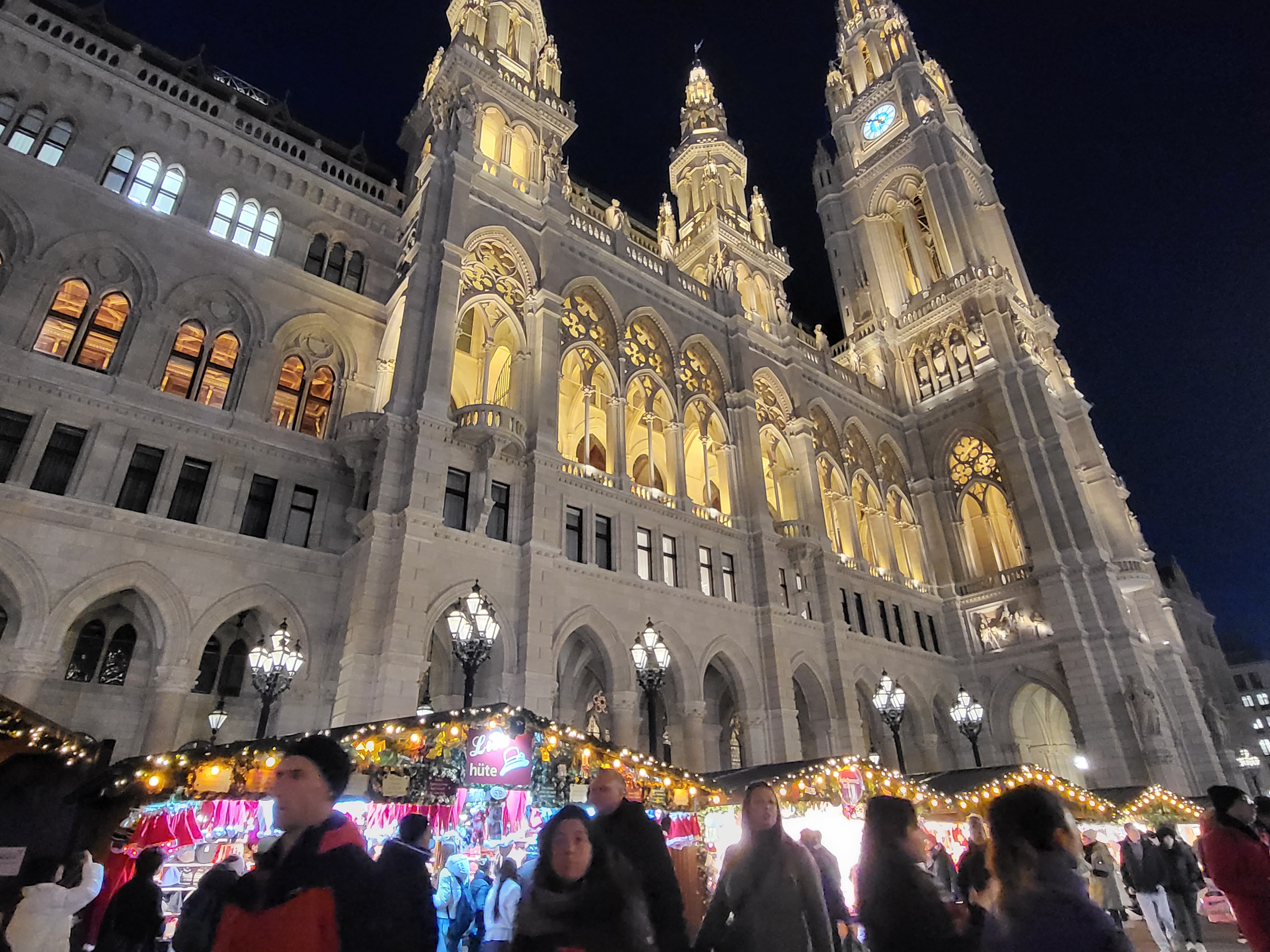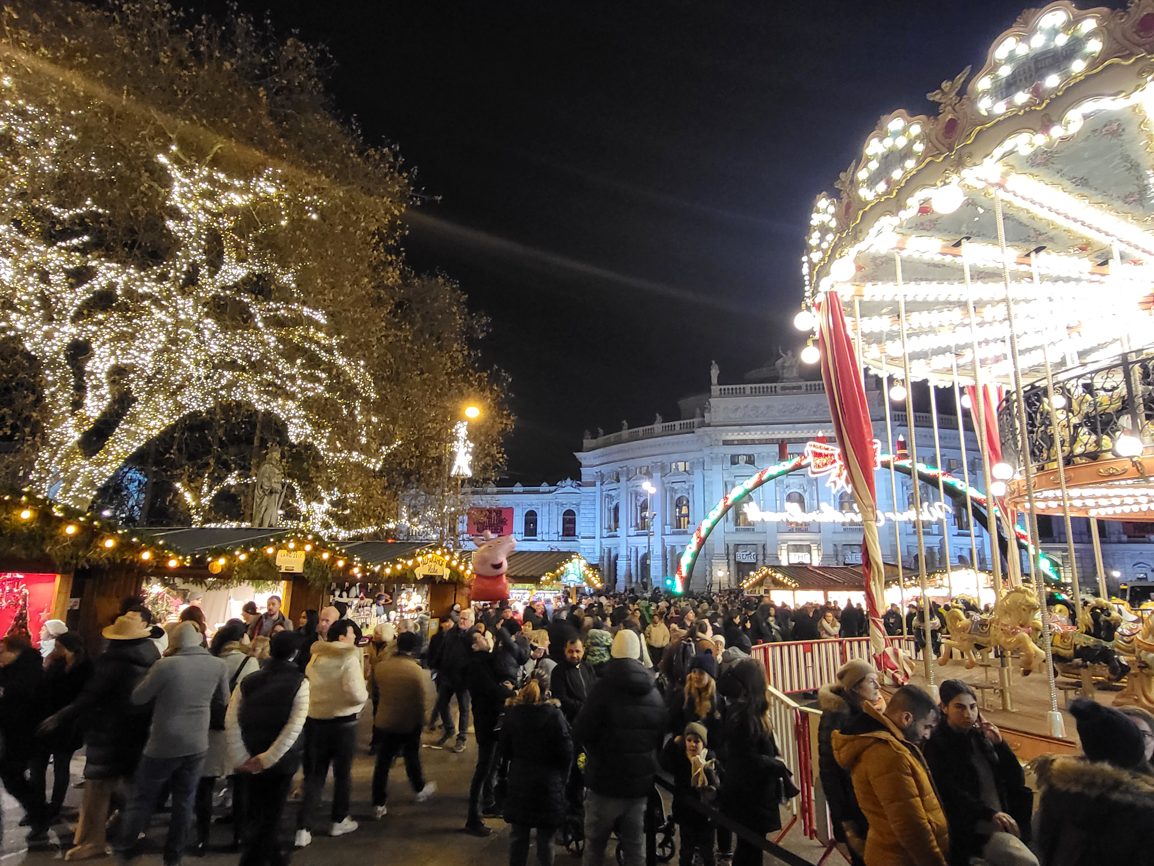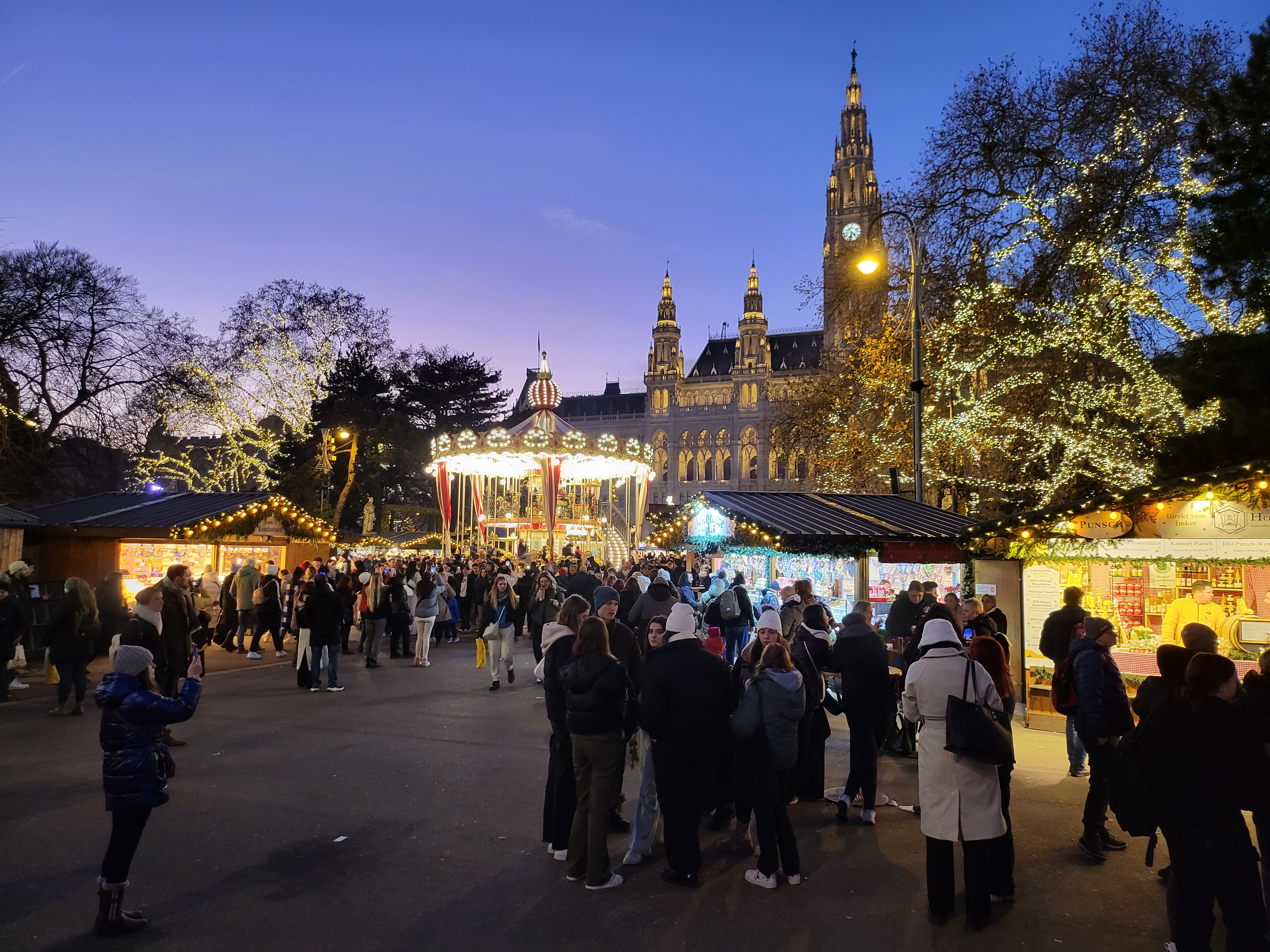 해가 진 후의 비엔나는 너~무 로맨틱하고 아름다웠습니다. 비엔나 크리스마스 마켓은 뉘른베르크보다 생기발랄한 분위기였어요. 온통 조명으로 장식된 비엔나 시청사와 거대한 크리스마스 트리, 오색현란한 조명, 놀이기구와 아이들 웃음소리, 따뜻하고 향긋한 뱅쇼... 여기는 천국일까요?