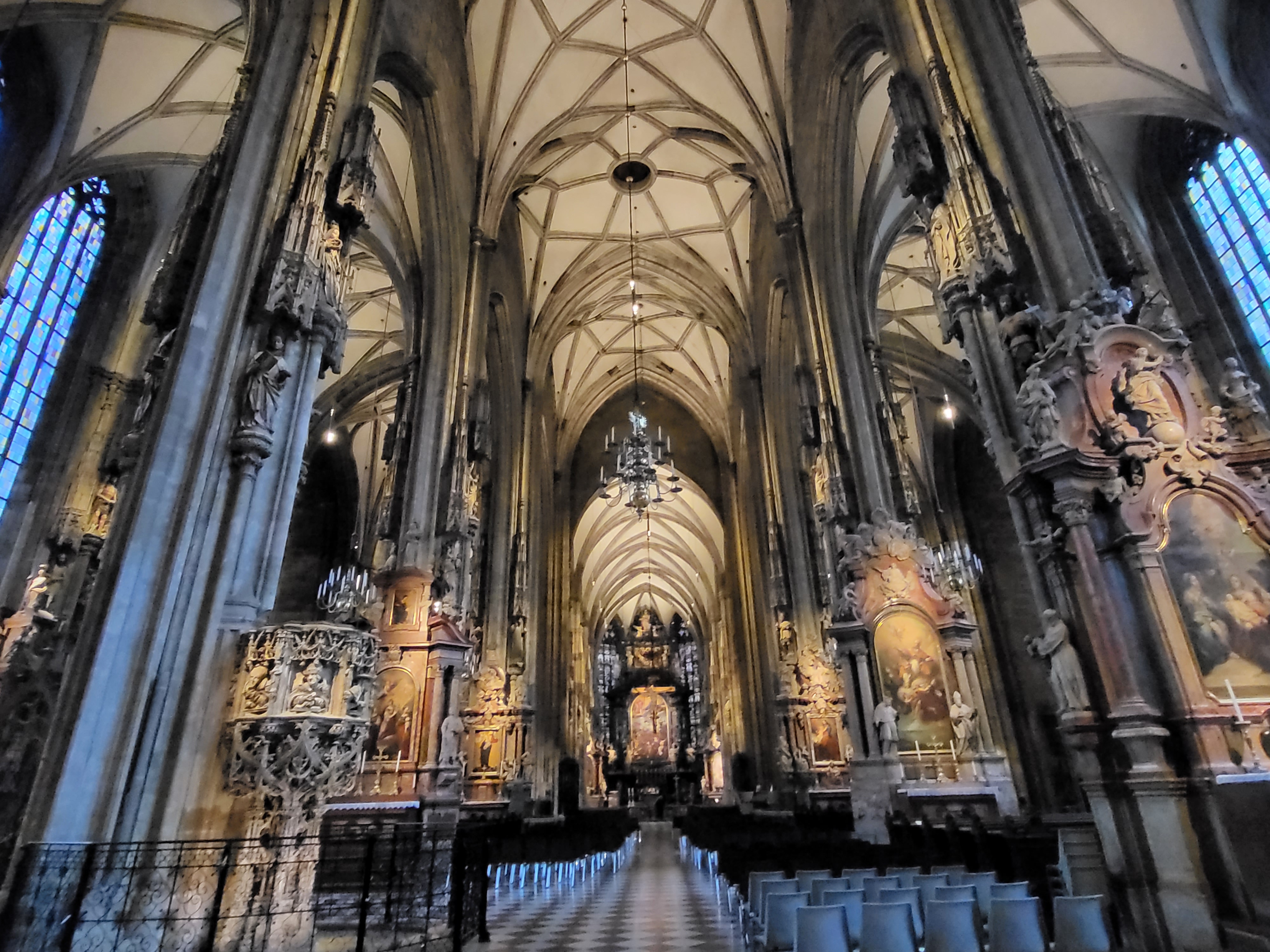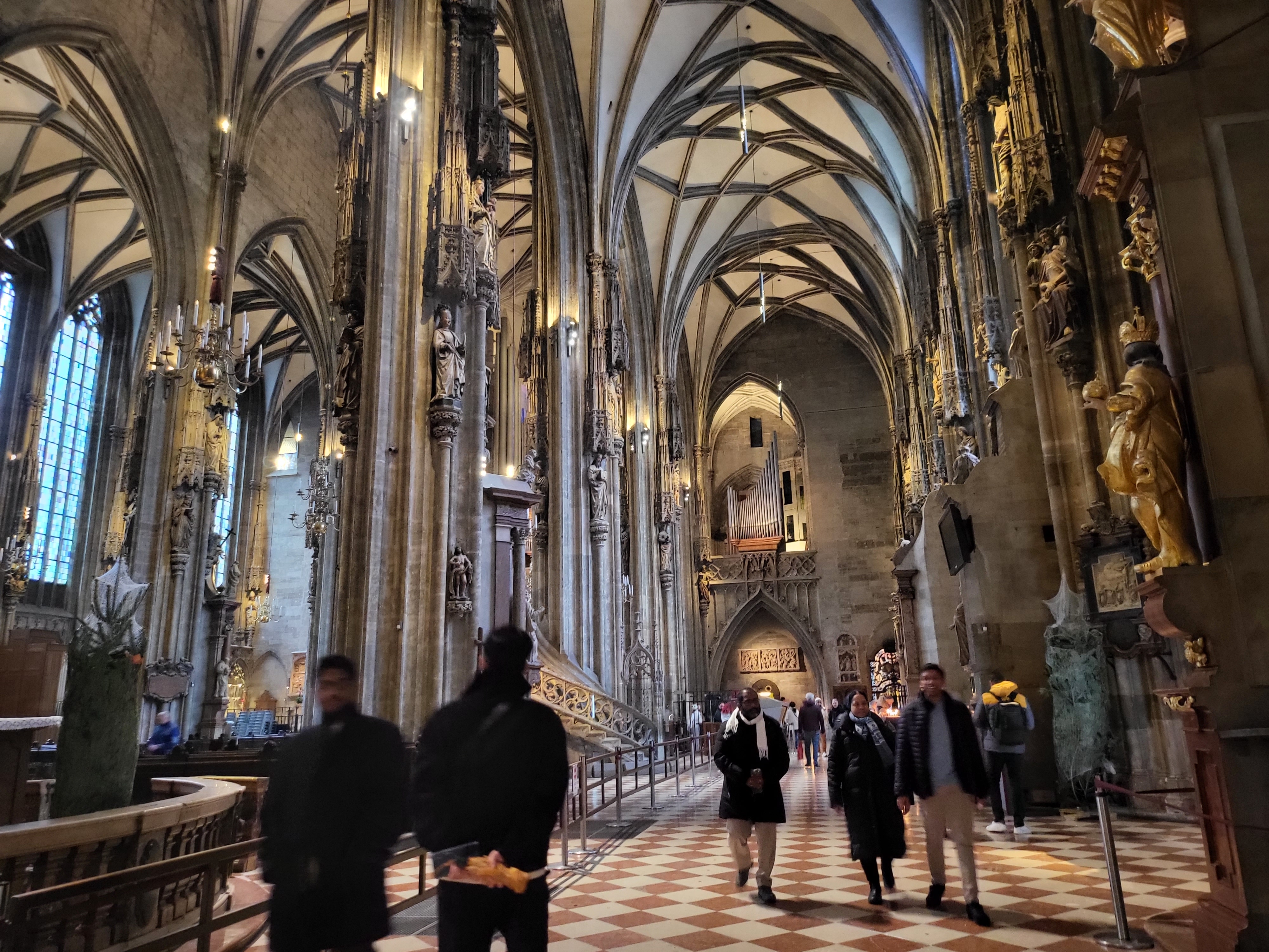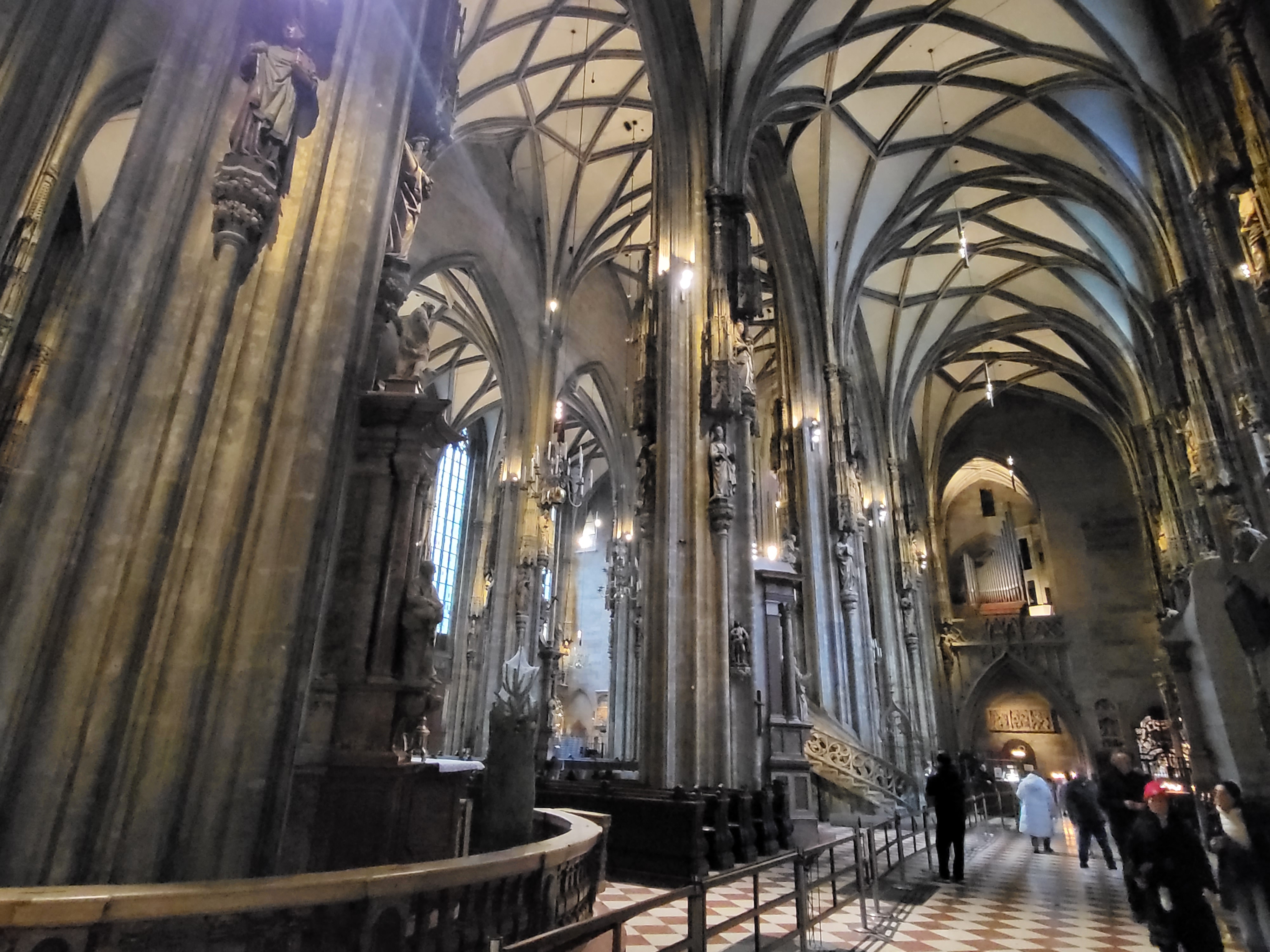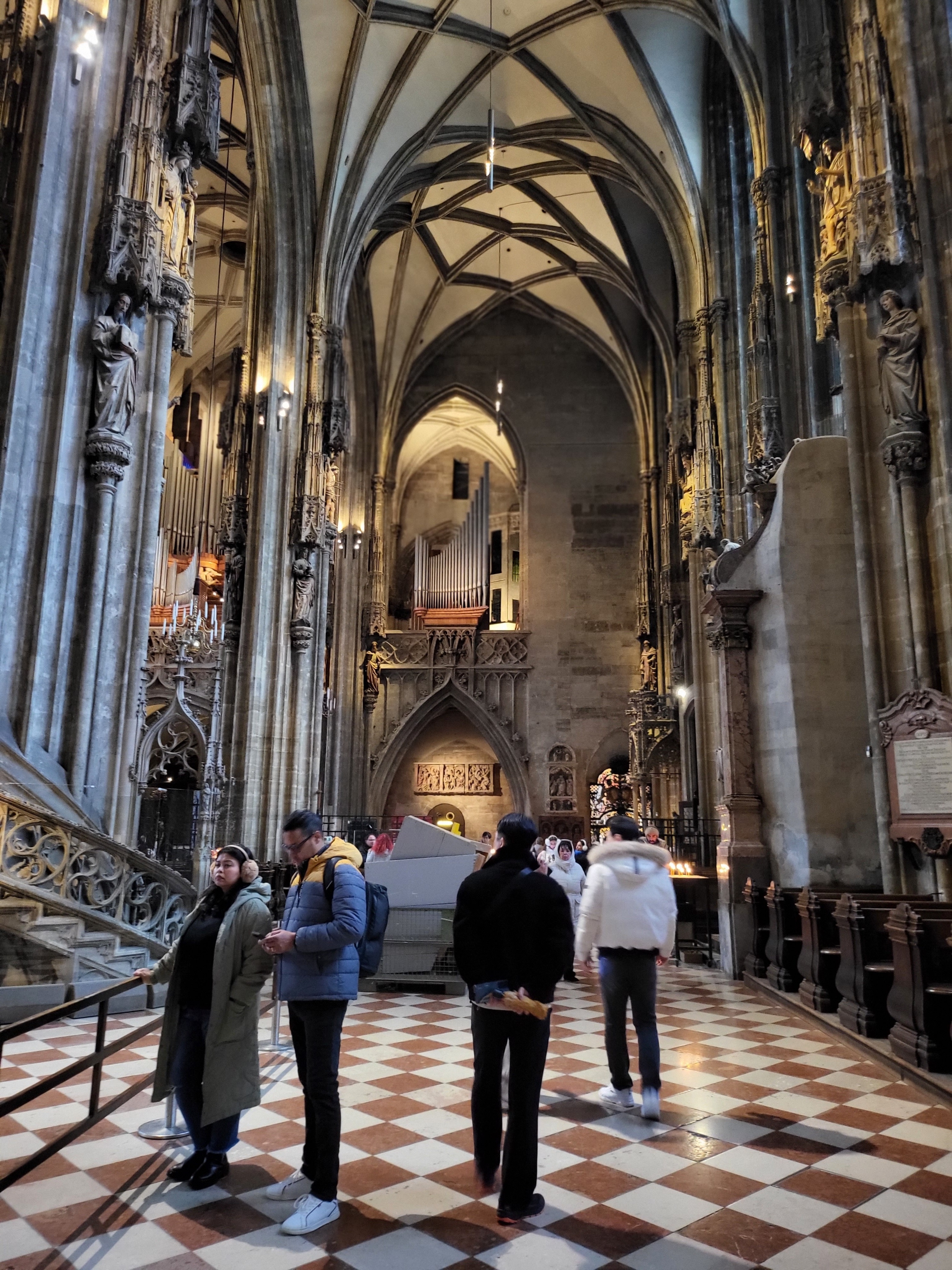 여행 7일째 비엔나의 아침은 부슬부슬 비가 내리면서 기온이 뚝 떨어졌어요. 이상하게 한국보다 더 따뜻하다 했더니 이제 동유럽 날씨 같네요. 눈이 내렸으면 얼마나 좋았을까만은 기온이 높은 탓에 비로 내리나 봅니다. 숙소가 비엔나 시내에 있다보니 조식 후 아침 일찍 슈테판 성당이 있는 시내로 나왔어요. 낮에 보는 대성당은 뾰족한 첨탑과 사람이 만들었다고 믿기 힘들만큼 섬세하고 정교한 외벽 조각과 각종 천장 타일이 경이로움을 자아냈습니다. 어떻게 그 옛날 장인들은 이런 건축물을 완성해냈을까요? 그리스교 역사상 최초의 순교자로 기록된 슈테판의 이름을 딴 이 곳은 사암으로 지어져 시간이 지날수록 색이 검게 변하고 있다고 합니다. 거뭇거뭇한 외벽이 건물을 더 웅장하고 근엄하게 보이게 하네요.