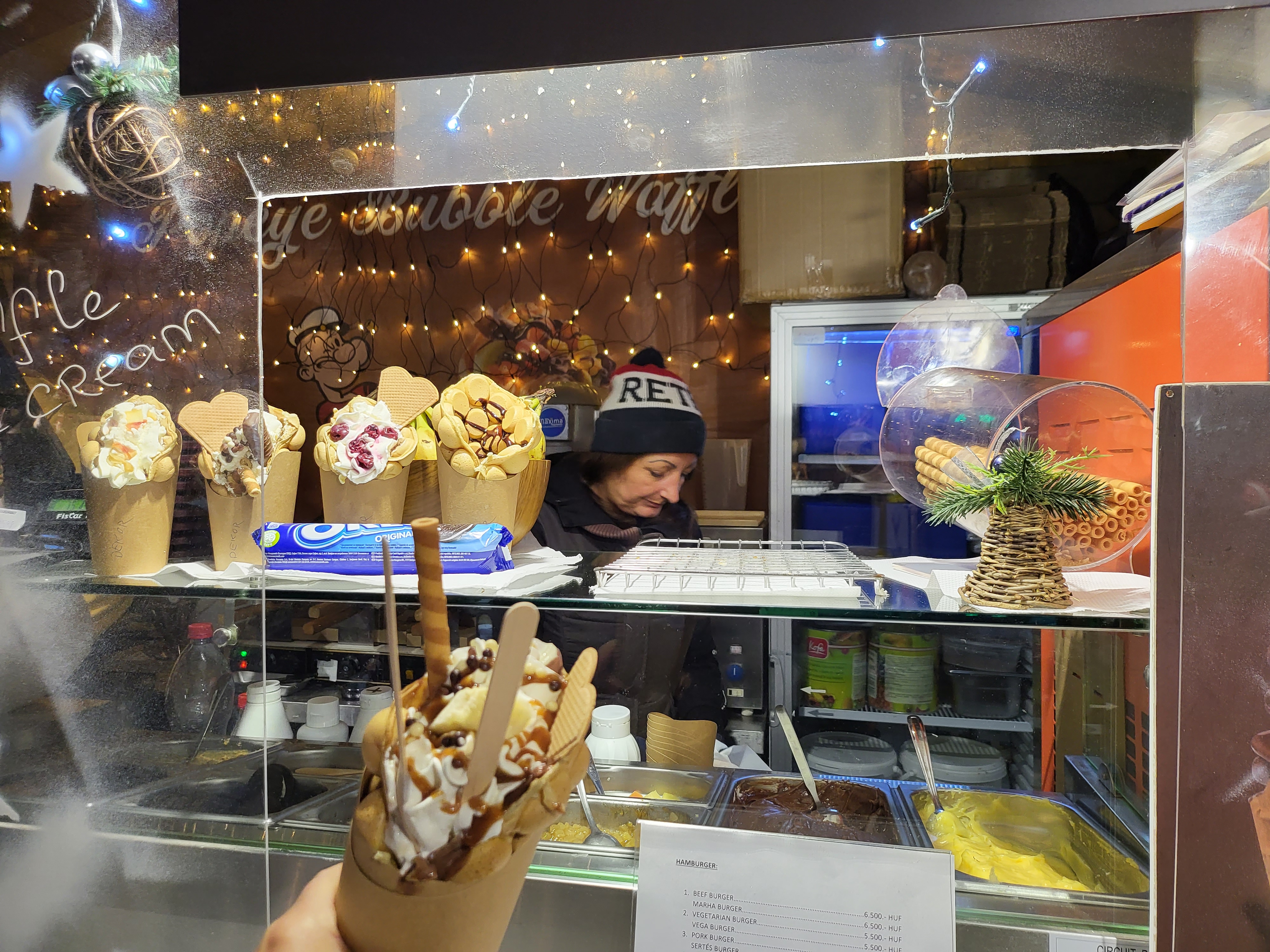 마지막 장소입니다. ㅠㅠ 성 이슈트반 대성당(Szent István Bazilika) 앞 광장에서 마지막 크리스마스 마켓을 둘러보고 헝가리를 상징하는 고추 모양 마그네틱도 샀어요. 옆에서 하고많은 것 중에 왜 고추 모양을 사냐고 뭐라 그럽니다. 내 맘이죠. 땡기는 걸 어떡해요? ㅎ 아쉬운 마음에 헝가리 와플을 하나 사서 우리는 또 넷이서 사이좋게 나눠먹었어요. 와플 만들기를 기다리는 동안 지나가는 사람들에게 호객행위를 좀 했더니, 브라더 3명이 모른 척 저멀리 떨어집니다.;;; 첫날 서먹서먹 눈인사만 하던 사이가 이젠 티격태격 아주 그냥 4남매처럼 친해졌는데,, 이제 곧 부다페스트 공항으로 가야합니다. 여행이 그렇지요뭐.. 친해질만하면 헤어지잖아요.ㅠ