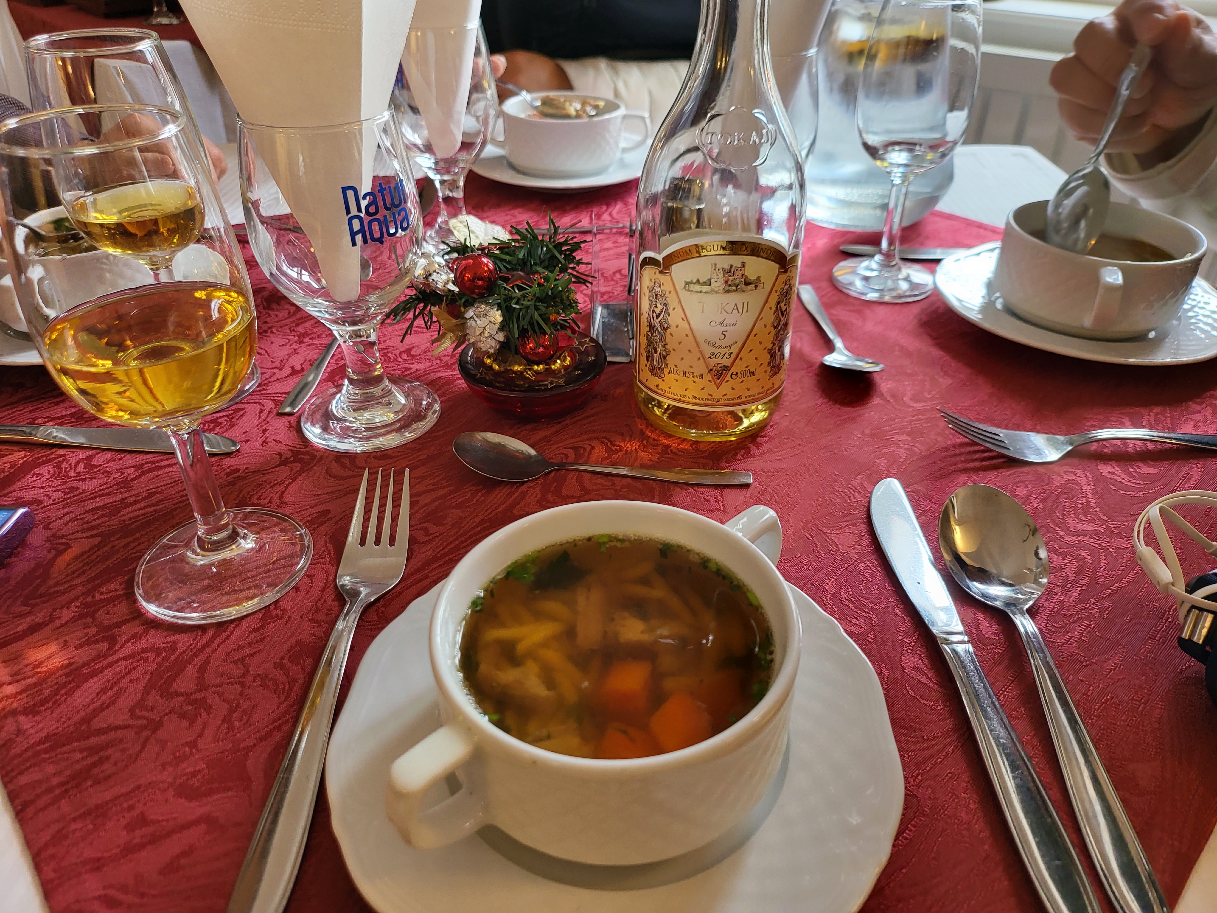 헝가리에서 토카이(Tokaj) 와인 한병은 마셔줘야쥬~ 토카이 와인은 귀부 포도(곰팡이 핀 포도)의 발상지인 헝가리 토카이 지역 특산품이자 신의 물방울 4권에도 등장하는 최고급 와인입니다. 달달한 디저트 와인이라 드라이한 맛을 선호하시는 분은 익숙하지 않겠지만, 우리나라에서는 매우 비싸답니다~ 이번 여행의 마지막 만찬은 토카이 와인과 함께한 헝가리 로컬 푸드였습니다.