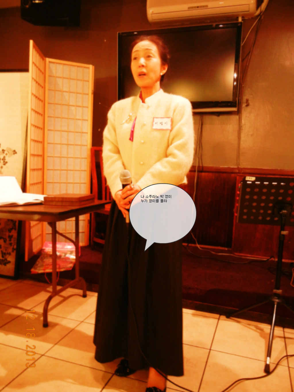 기타를 연주해주신 최 정미 선생님, 그리고 그 고운 목소리로 가곡을 불러주신 이 영미 선생님께 심심한 감사를 드리며 그날 DJ 를 맡아주신 존 박 선생님 감사함니다. 모두 즐거운 성탄절을 맞으시고 복 많이 받으시고 밝은 얼굴로 새해에 뵙기를 바람니다.