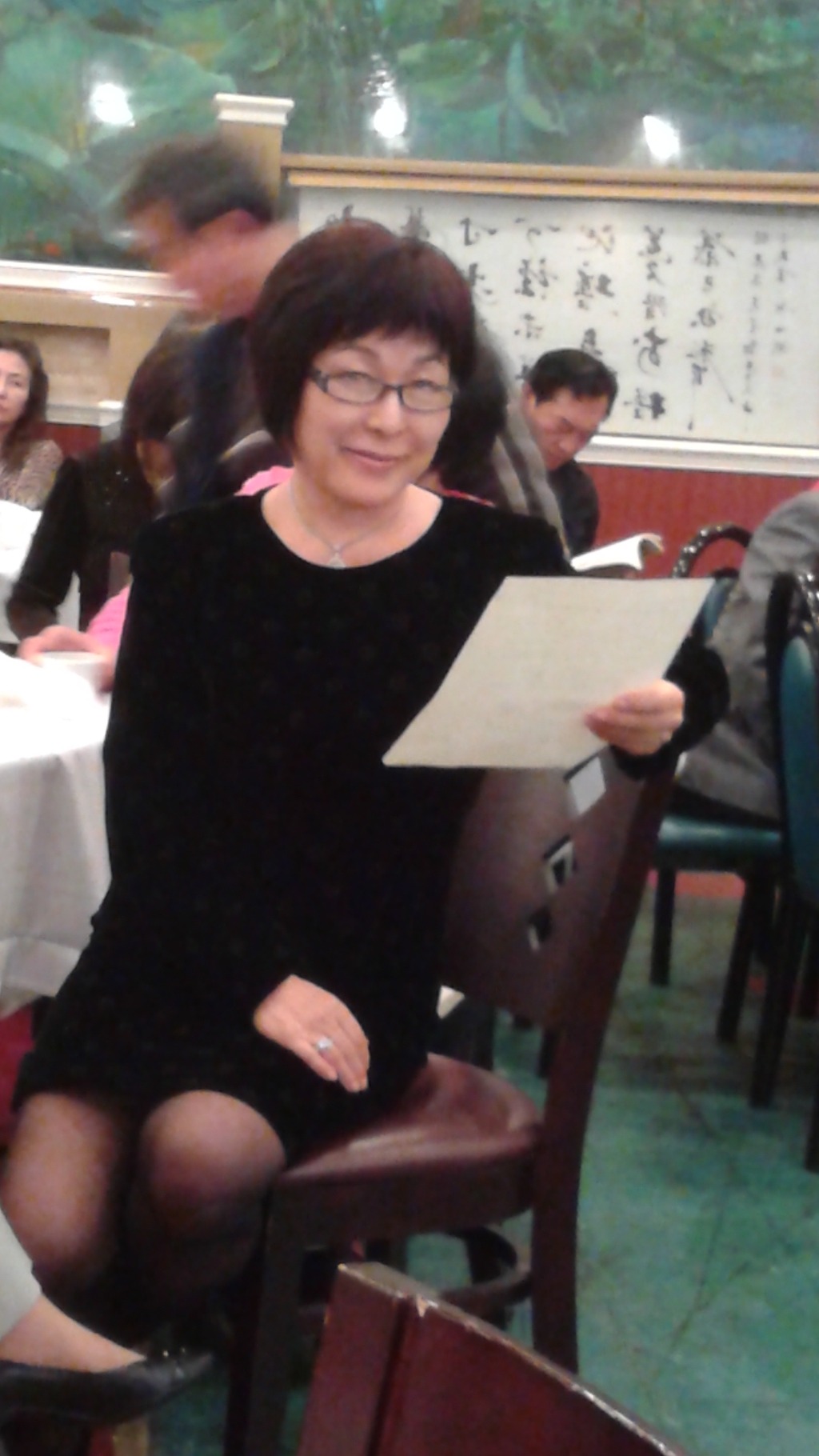 수필 "메기 식당의 추억"을 낭송하는 김 혜경 수필가.