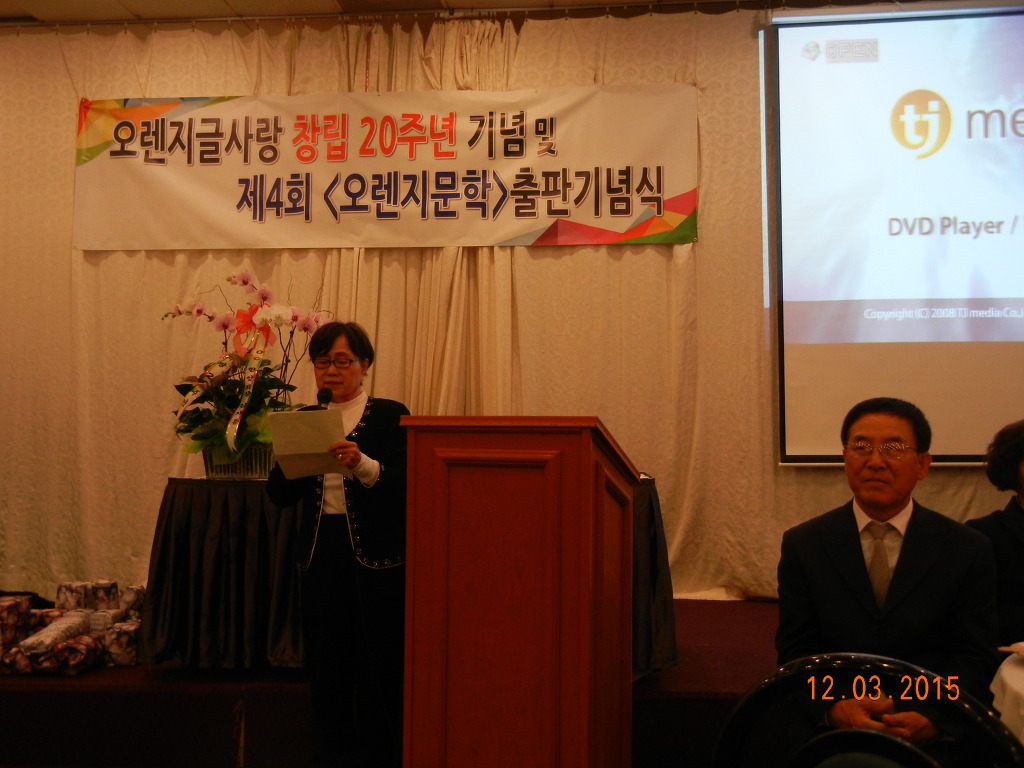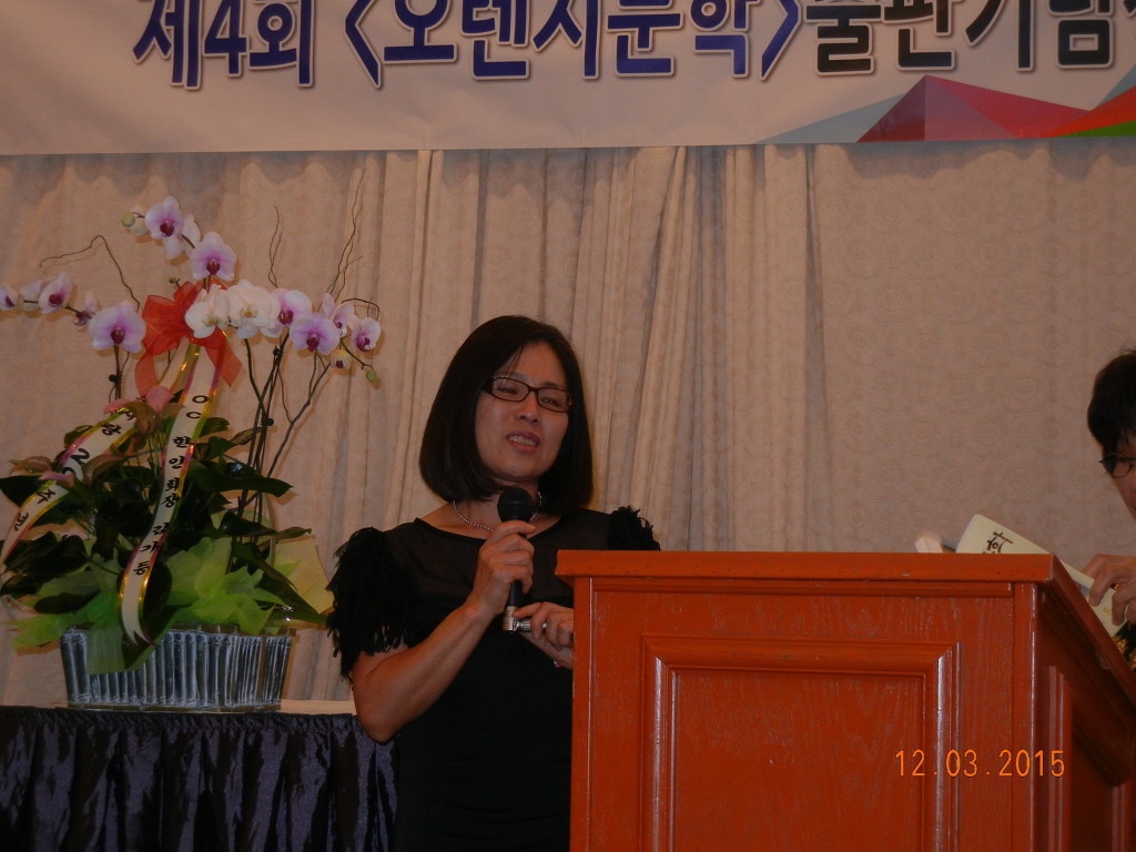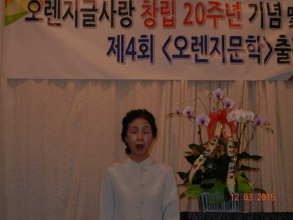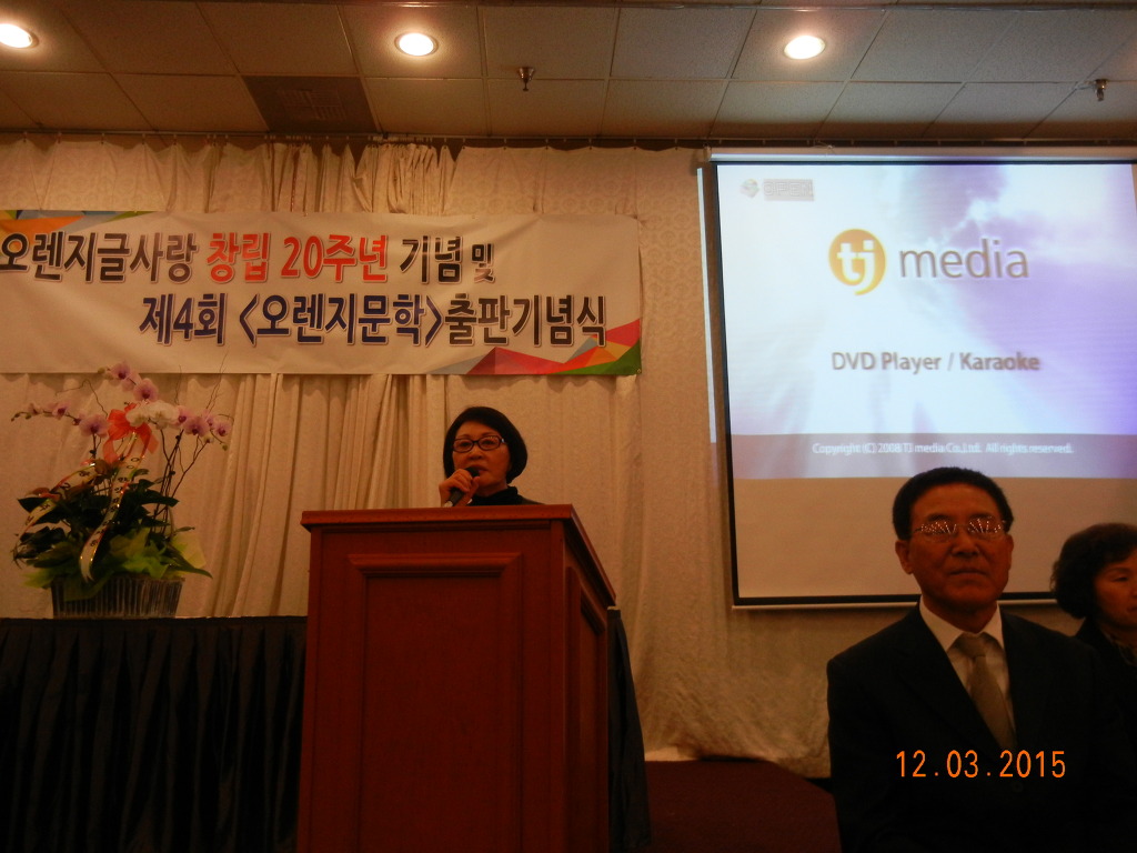 축사 해 주시는 미주 문인협회 장효정 회장님