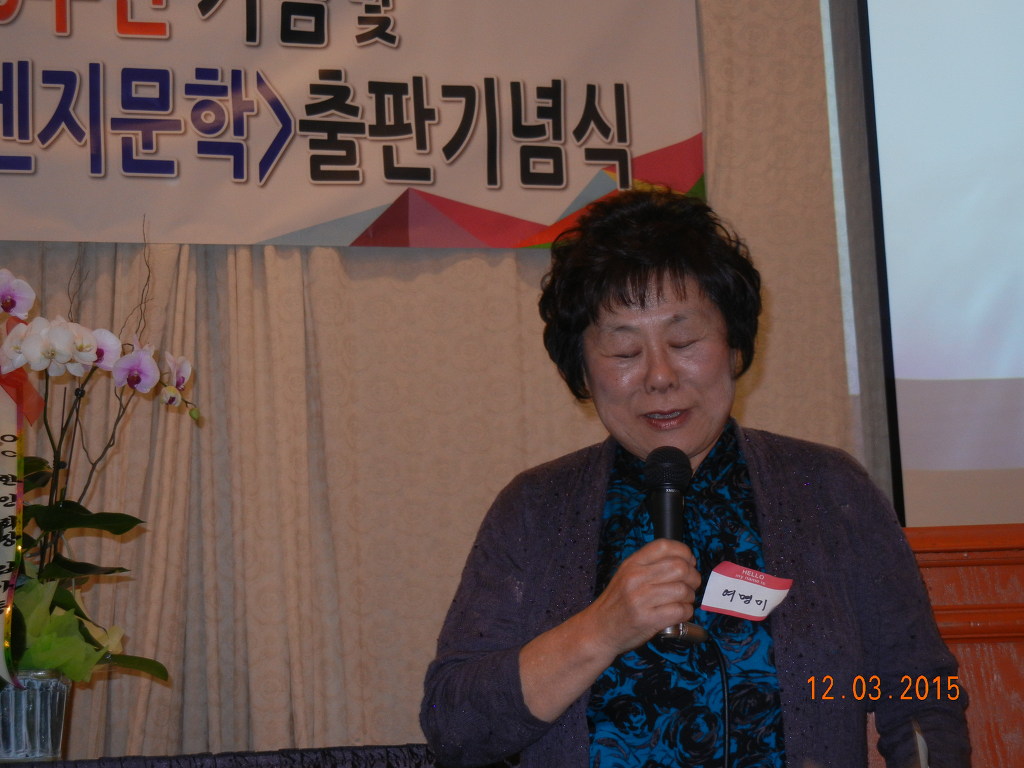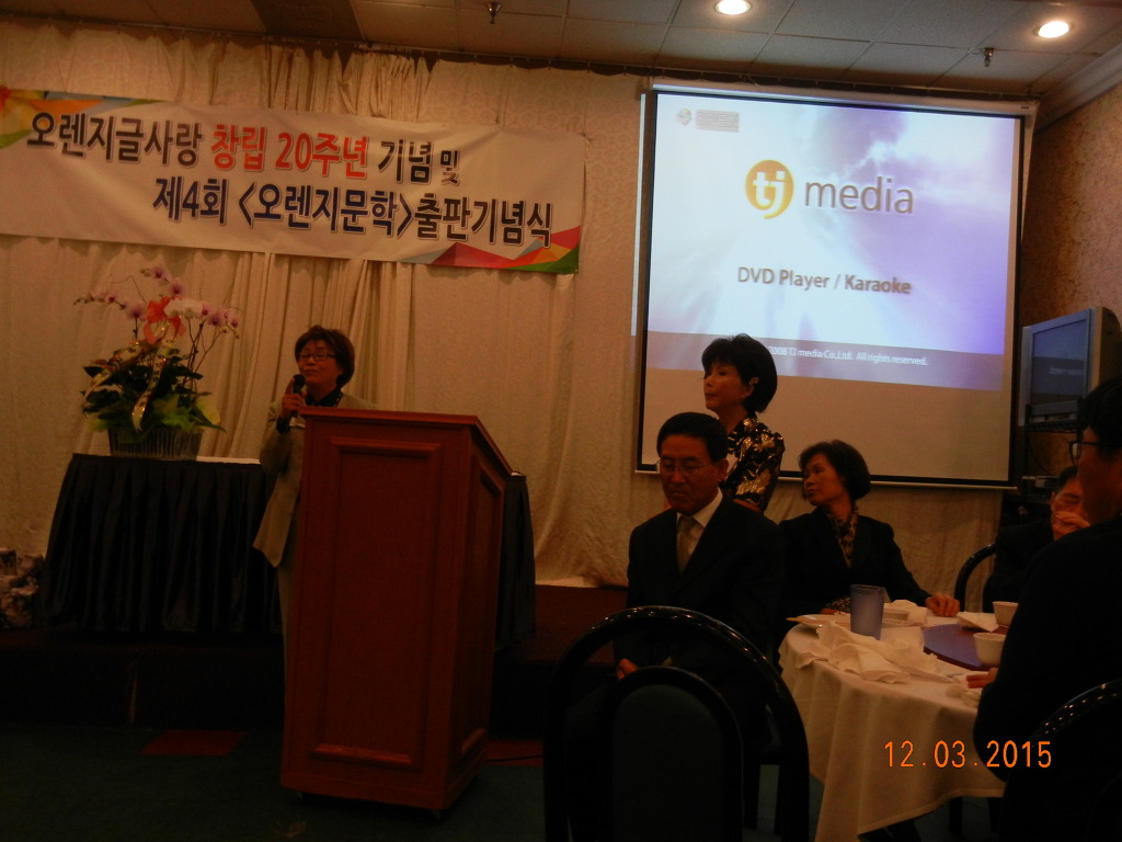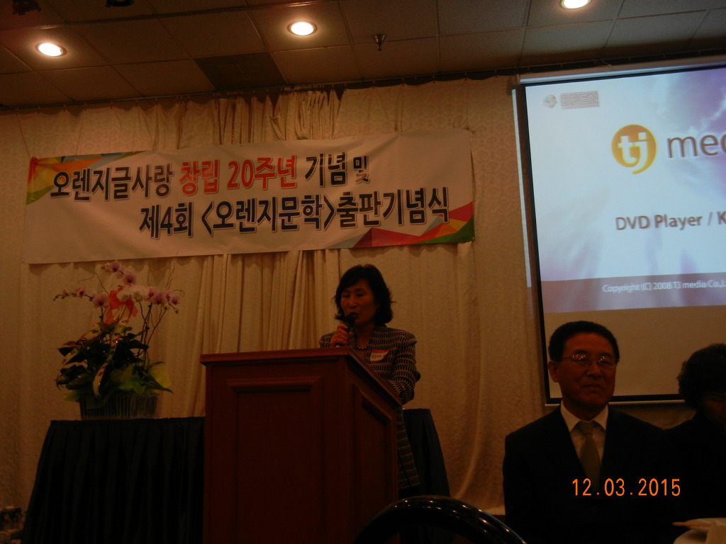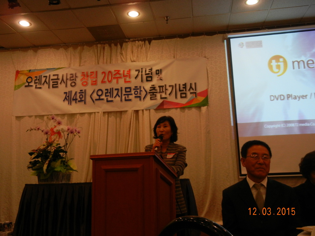 축사 해 주시는 미주 문인협회 장효정 회장님