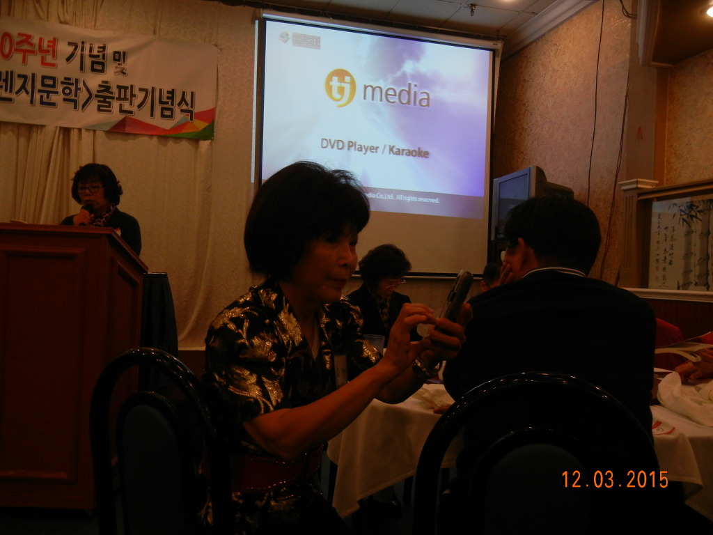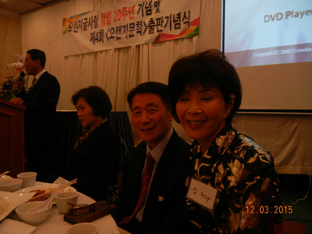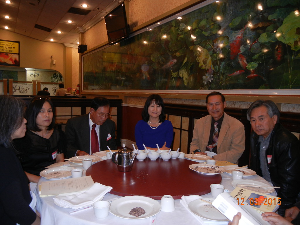 무언가 열심히 삼매 경에 빠진 분, 누구일까요. 네 콧수염도 그리운 바로 김동찬 시인입니다. 다 아시죠. 그 옆에 야릇한 눈초리로 꼬나보시는 분, 네 미주 문인 협회 장효정 회장 님이시네요. 이름도 이쁜 장 회장님, 이름만 예쁘냐구?? 천만에요.