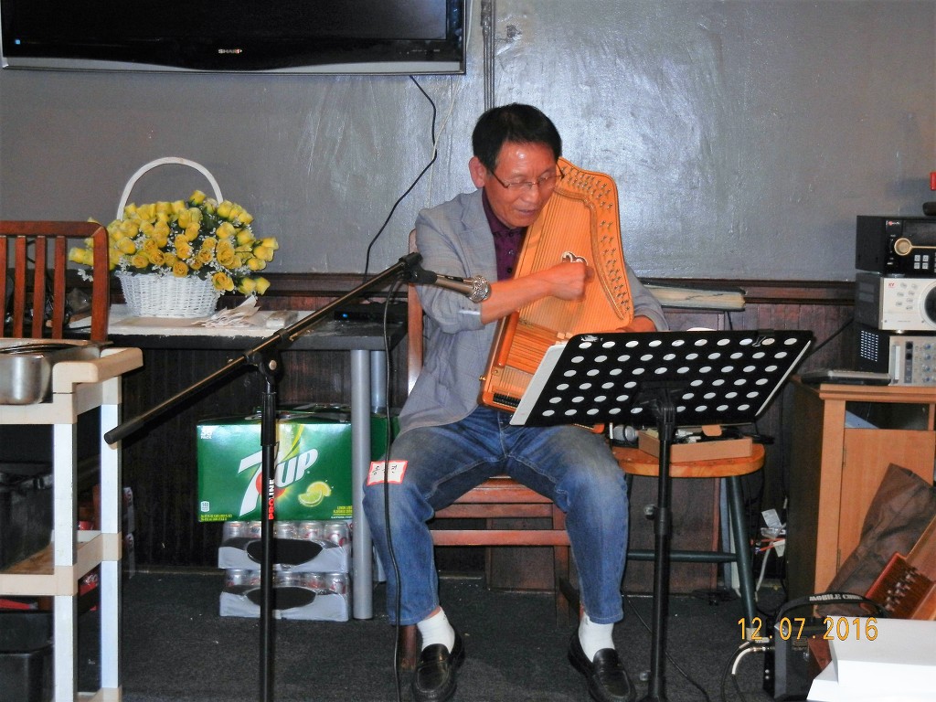 선생님, 눈 뜨시고, 행복한 무드에 젖은 송 동진 선생. 해마다 하프 연주로 우리를 즐겁게 해 주십니다.
