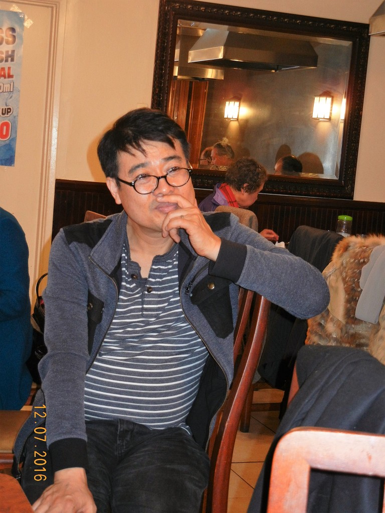 심각한 김 태식 선생님 곁 명상에 잠긴 이 창수 선생님.