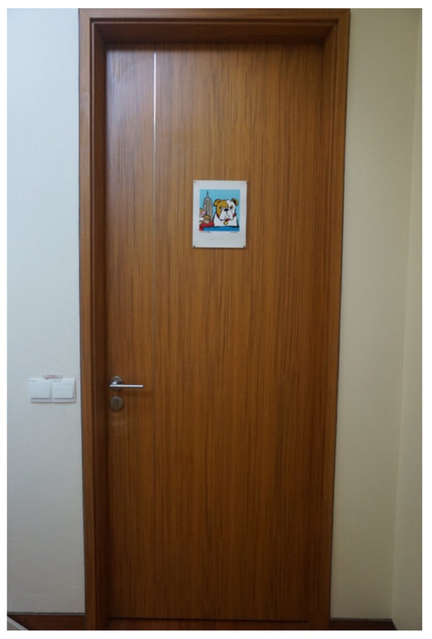 문 앞에 귀여운 그림과 함께 방 이름이 써있어요.