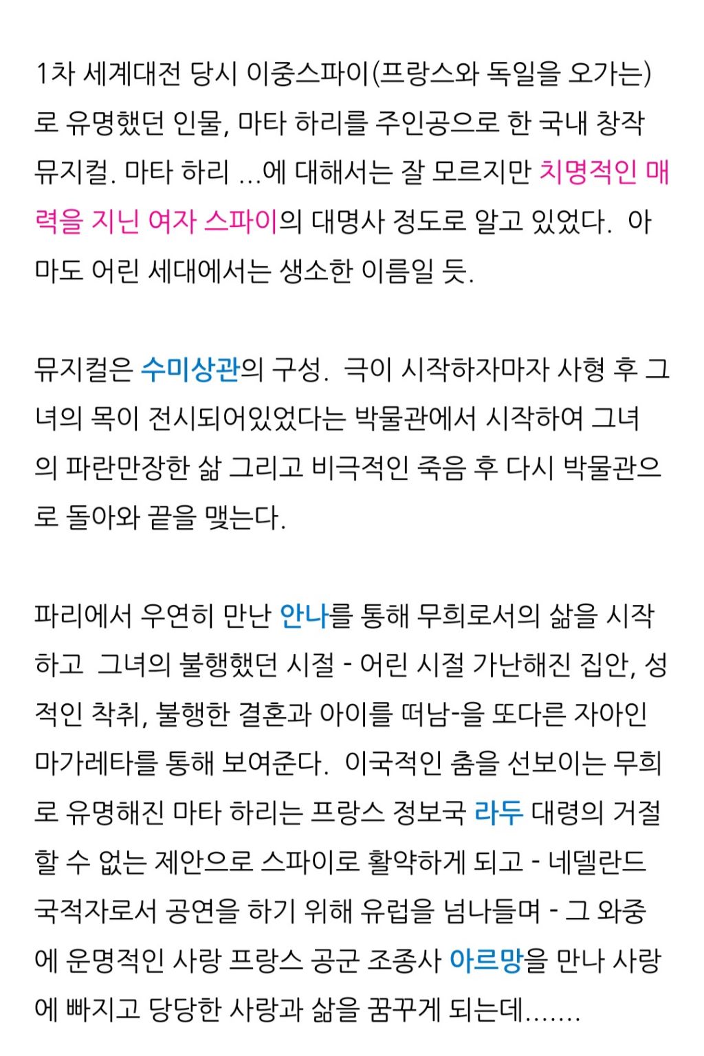 어제 가득님과 둘이서 뮤지컬 마타하리를 관람하고 왔습니다. 이중스파이 마타하리라고해서 액션,스릴러등을 생각하고 갔는데 장르는 로맨틱 러브 스토리였어요.