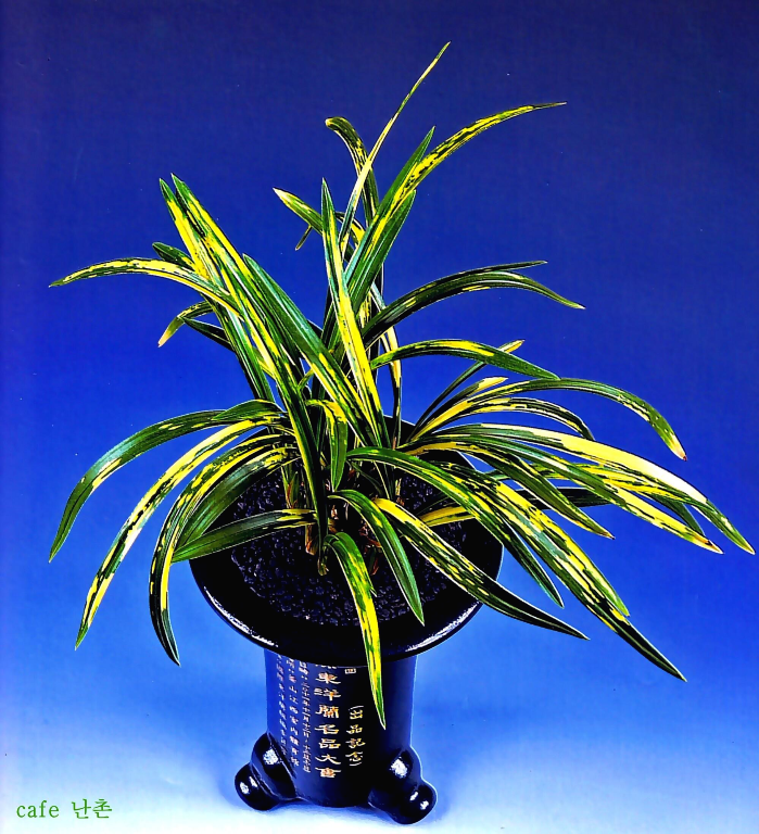 국춘란 호피반으로 잎자태 또한 중수엽의 수려한 자태를 나타내고 있으며, 엽폭(葉幅) 또한 비교적 넓은 품종으로 향후 발색에 따