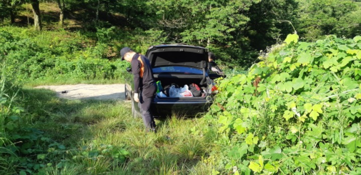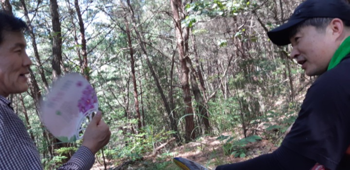 난초도 없고 위로간 일행을 따라 가볼까 하다가 더워서 도저히 안되겠어서 먼저 천천히 하산 하기로 하고 한참을 내려 오는데 정상 쪽에서 일행 소리가 나서 크게 소리쳐 주니 그쪽에서도 소리친다. 하산하라고 소리치고 우선 차로 가서 시원하게 에어컨을 키려고 온도를 확인하니 온도 41도다. 어쩐지 이렇게 더워 죽겠는게 생전 처음이다.
