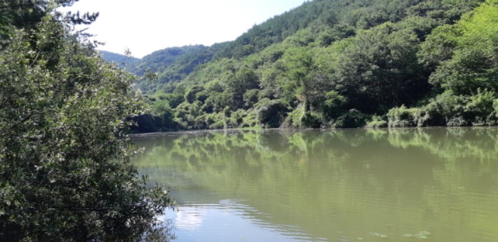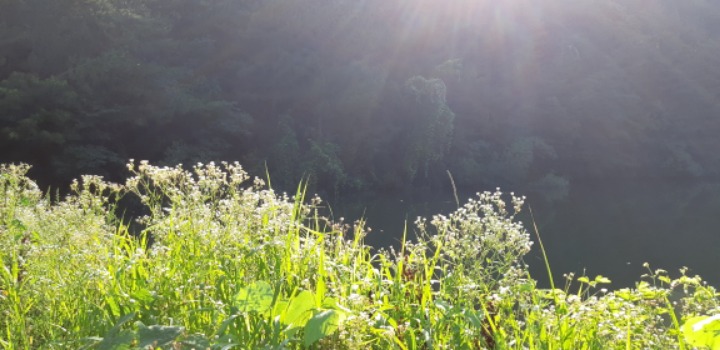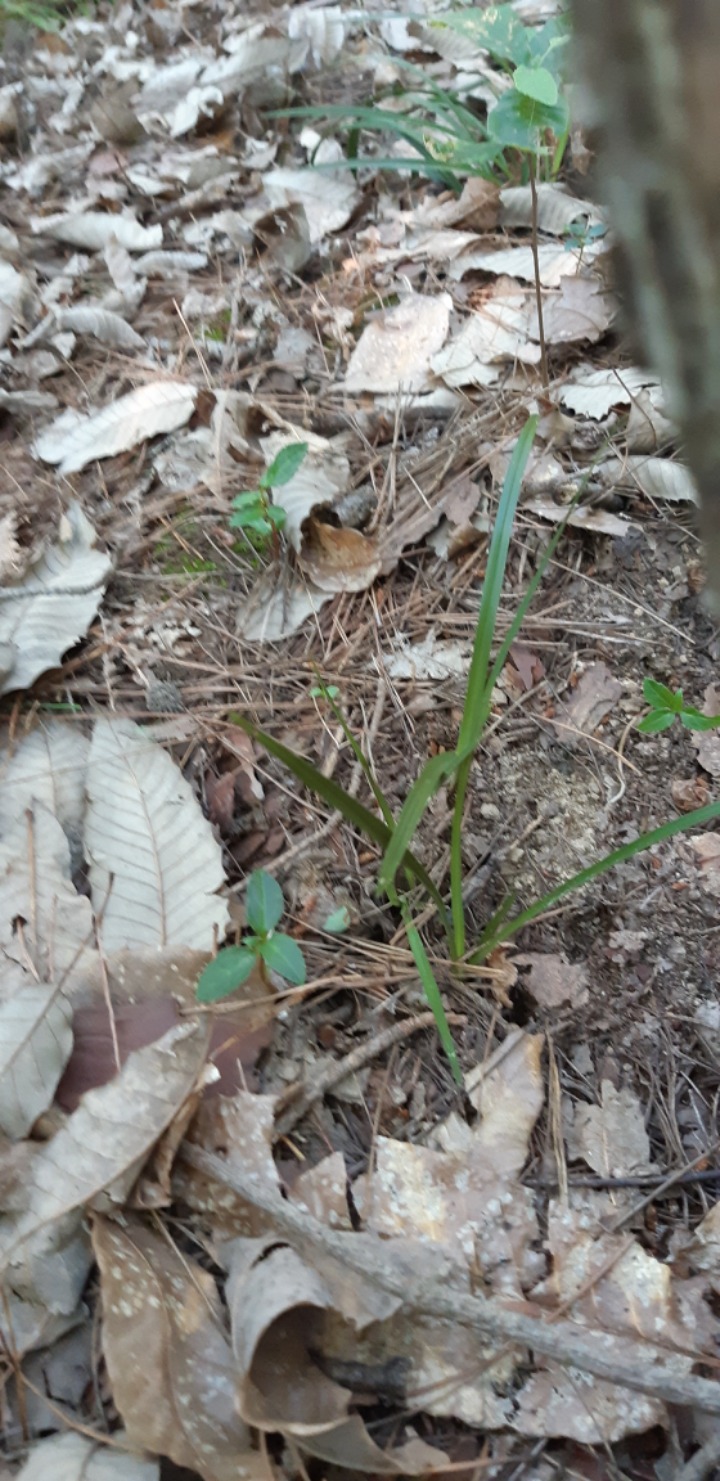 한참후에 능선 정상부로 올라가니 흩어 졌던 일행들이 다 모였는데 난초가 조금 있긴한데 생강근이 없다고 옮기자고하여 골짜기옆 능선을 타고 저수지 옆으로 내려 왔으나 난초가 없다