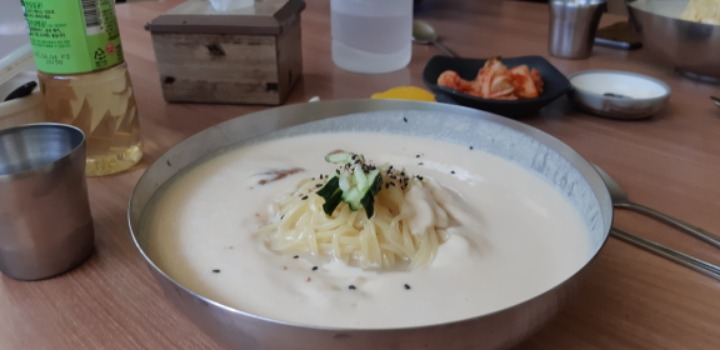 삼가면 시내로 나와 삼가반점에서 냉콩국수 한그릇씩 식혀 먹으니 시원하고 고소한 맛이 일품이고 배가 부르니 아무생각도 없다.