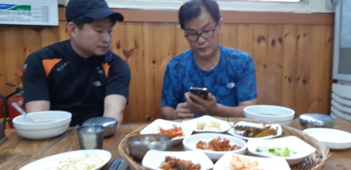 원지에서 아침을 먹으며 옆집 식당이 계속 문이 닫혀 있어 여쭈어 보니 여주인이 무릅수술을 하여 쉬고 있다고 한다.