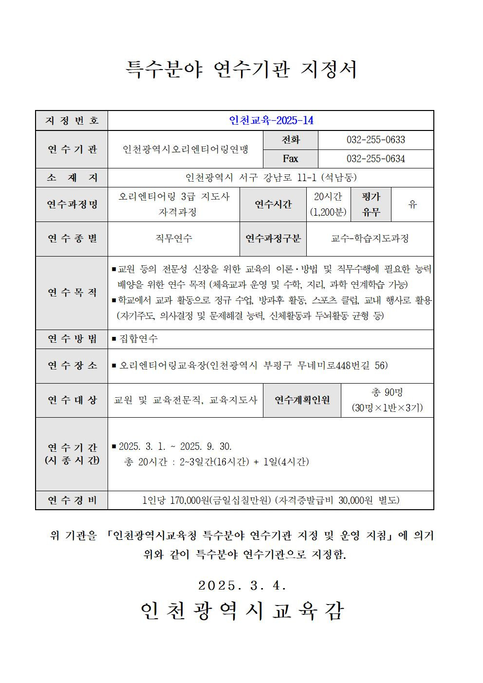 2025년도 1차 직무연수(특수분야)