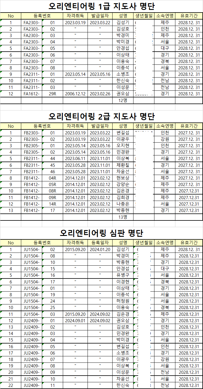 오리엔티어링 공인자격(1,2급 지도사 / 심판) 현황 - 2025년 현재 작성자사무국|작성시간25.11.19|조회수60 목록 댓글 0 글자크기 작게가 글자크기 크게가 다음검색 현재 게시글 추가 기능 열기 북마크 신고 센터로 신고 댓글 댓글 0 댓글쓰기 답글쓰기 댓글 리스트