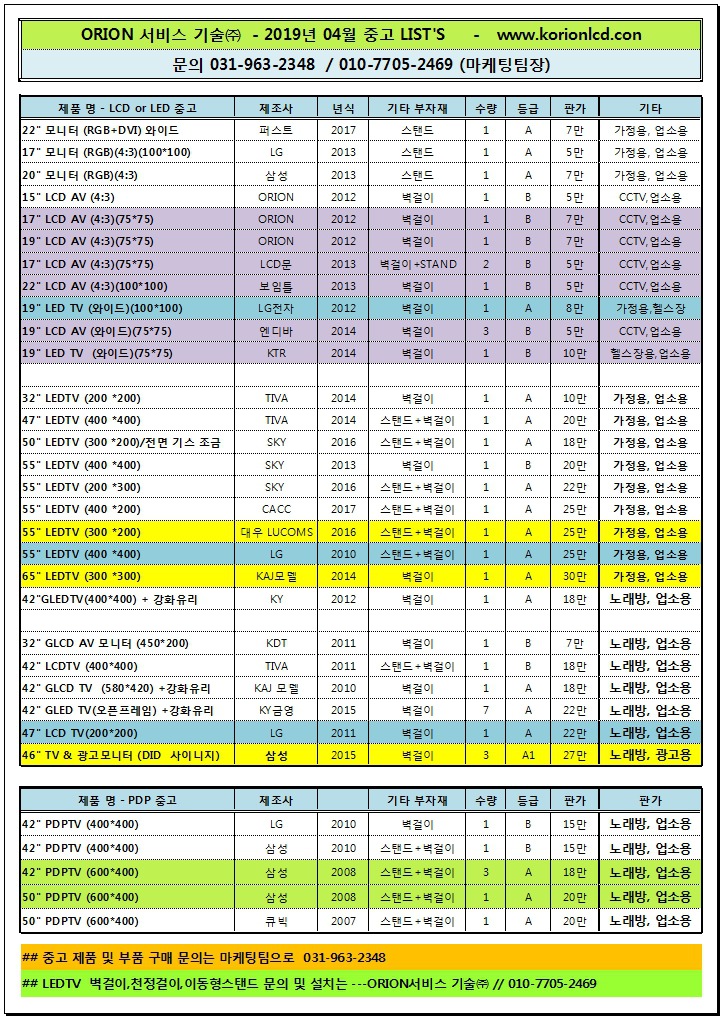 2019년 4월 ---중고 ledtv ,중고 모니터 LIST'S