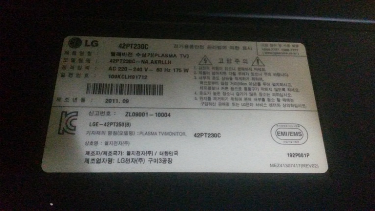 2) 년식 : 2011년.09월 (LG PDP중에서 가장 최신형)