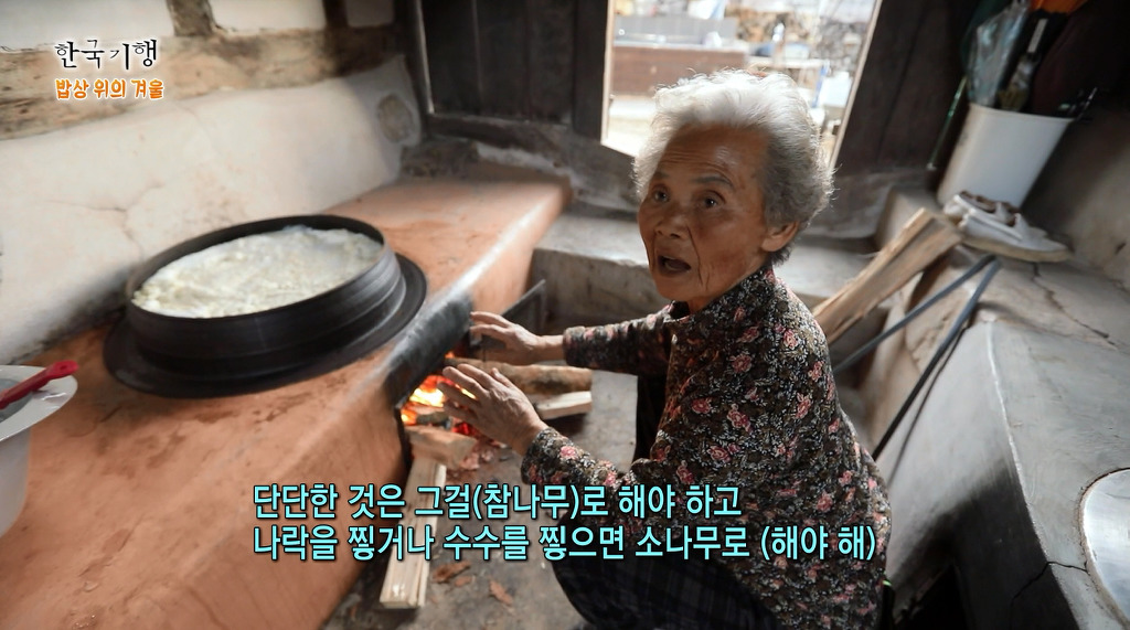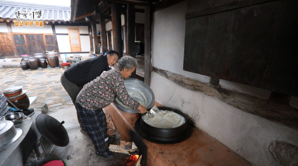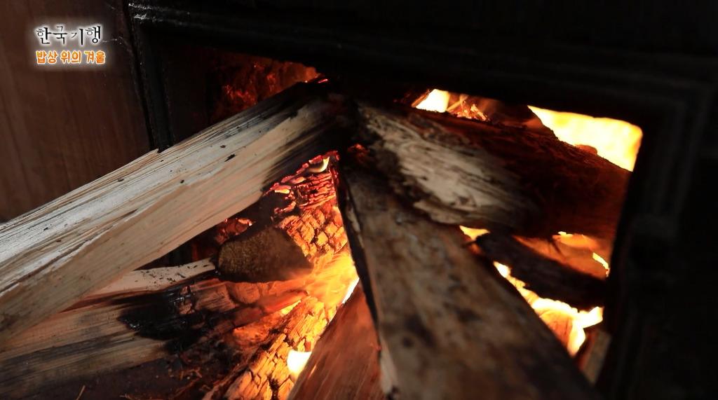 두부를 끓이는 아궁이에는 지펴넣은 장작불이 예술입니다