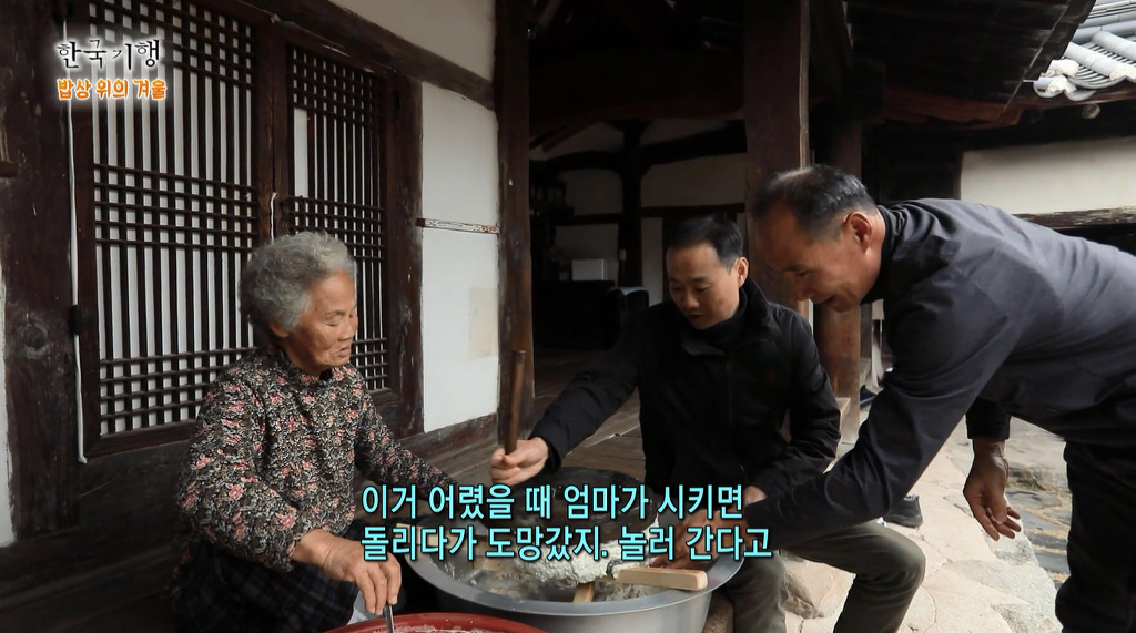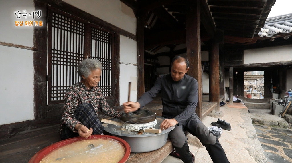 맷돌에 콩을 갈아 두부 만들기,
