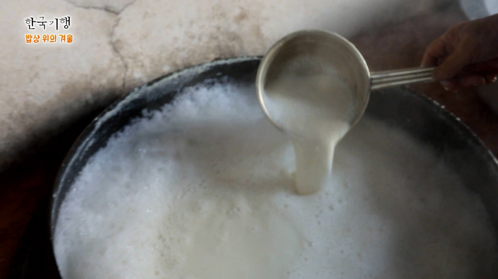 맷돌에 곱게 간 콩을 가마솥에 넣고 장작불을 지펴 부글부글 끓입니다