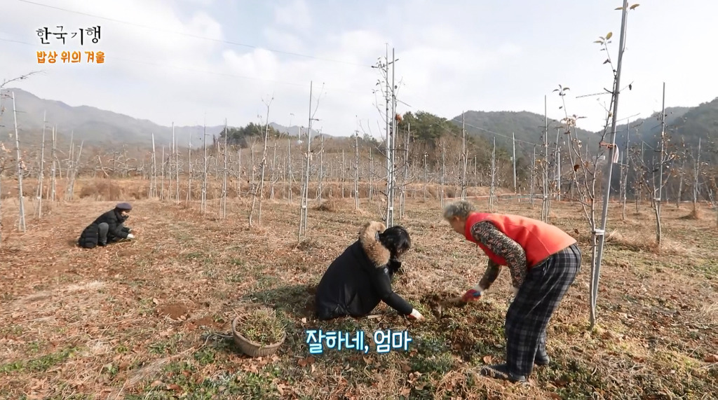 오랜만에 딸들과 함께 냉이를 캐는 어머니가 신나고 좋기만 하십니다