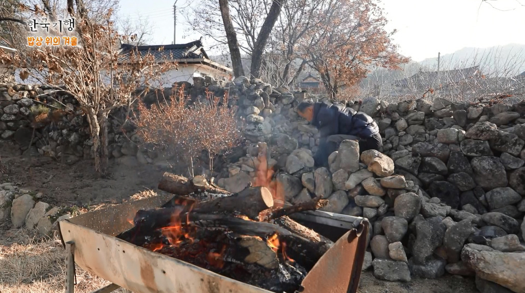 아침날씨가 쌀쌀해서 모닥불을 피워 손을 녹여가면서 쌓지요