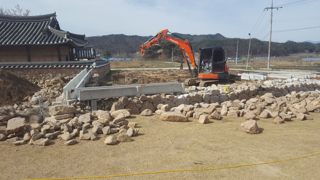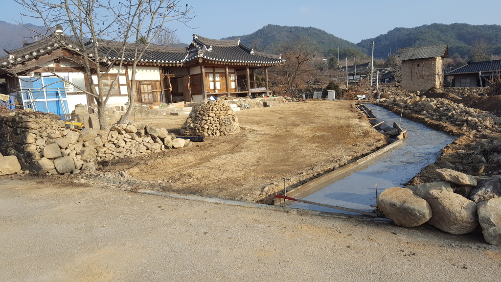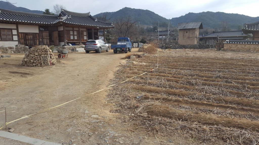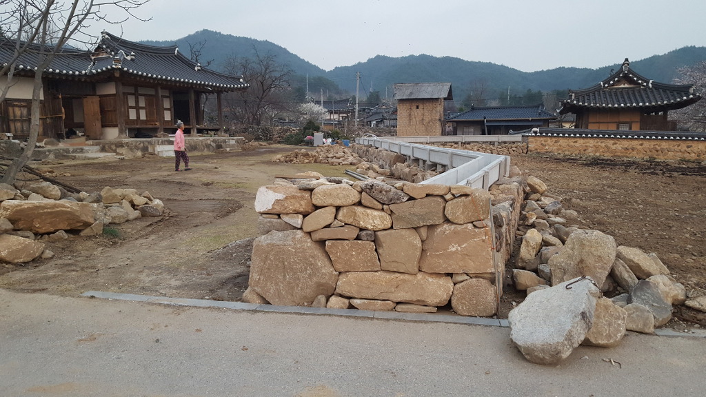 앞마당의 돌담장은 2000년부터 2003년 사이 경상북도 북부지역 유교전통문화 복원사업 중에 우리 마을이 선정되어 복원 보수작업을 할 때, 앞마당의 돌담장을 새로 쌓는다고 해체한 다음 사업이 중단되어 흔적 없이 사라진 돌담장을 새로 쌓는 것이랍니다.