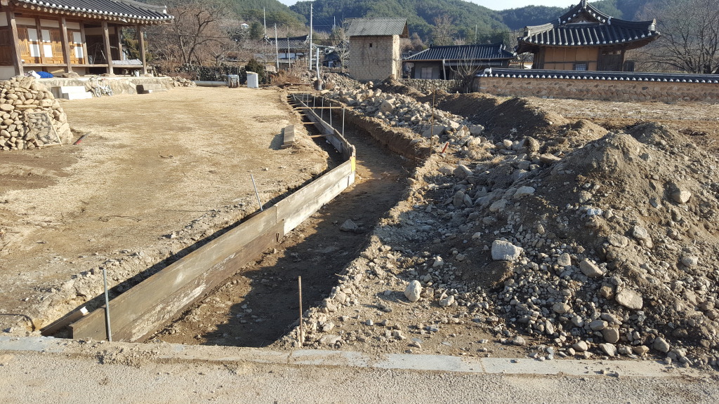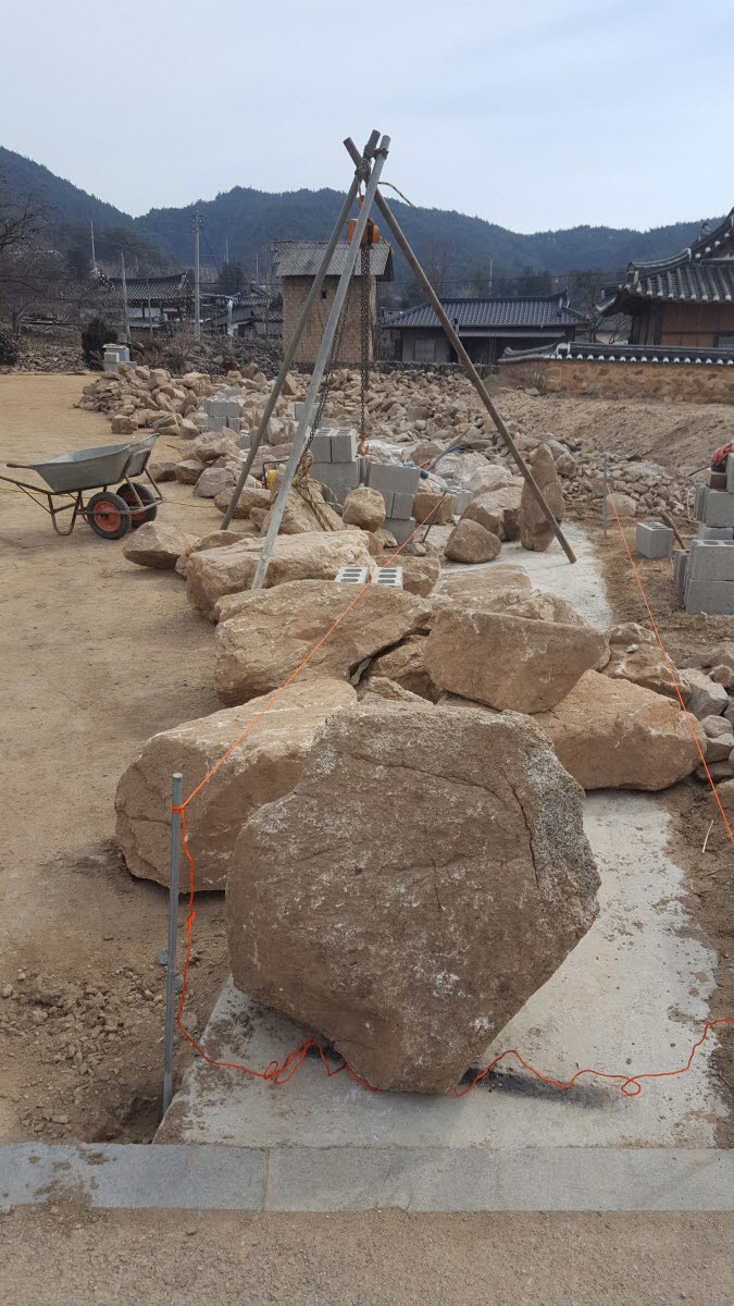40미터나 되는 돌담장의 기초를 처음부터 돌맹이로 한다는 것이 엄두가 나지 않아서