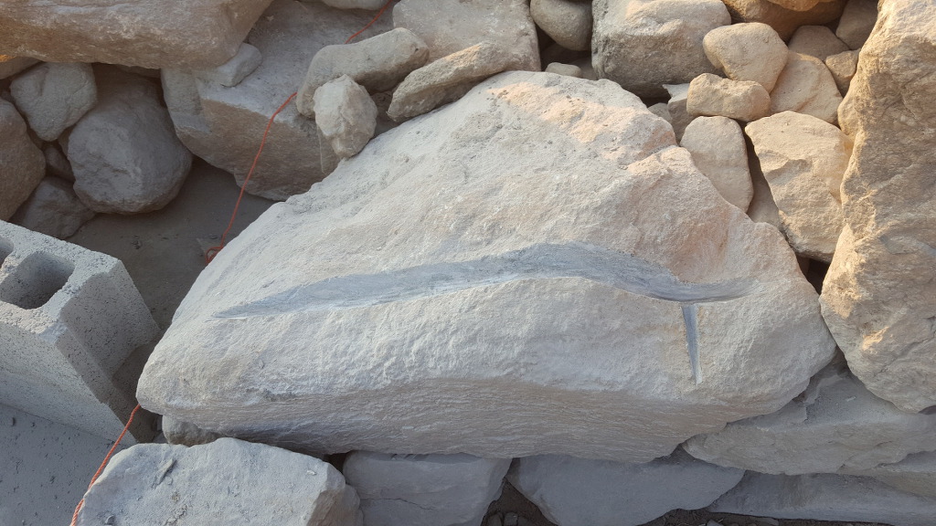 완성한 홈에 쐐기 역활을 할 적당한 돌맹이를 찾아 넣습니다