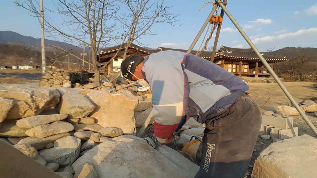 이렇게 겨울부터 시작한 앞마당 돌담장 쌓기가