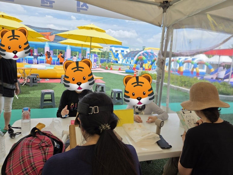 성내천의 시원한 물줄기와 일원에코수영장의 부드러운 거품 놀이, 그리고 감짝 캐리커처 선물까지! 올여름은 부덥지만, 행복한 순간이 가득했던 하루였어요.