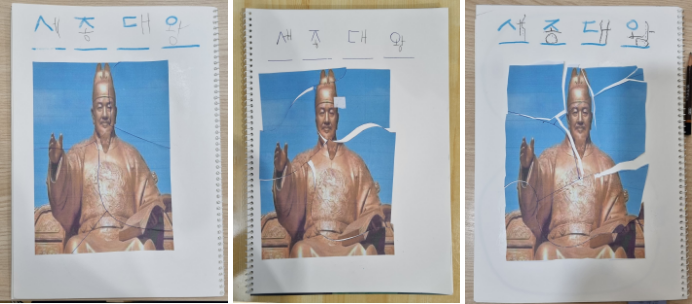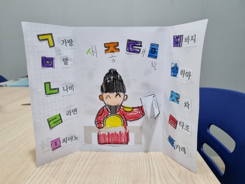 세종대왕 도안을 색칠하고 자음에 맞는 단어를 찾는 게임을 했습니다!