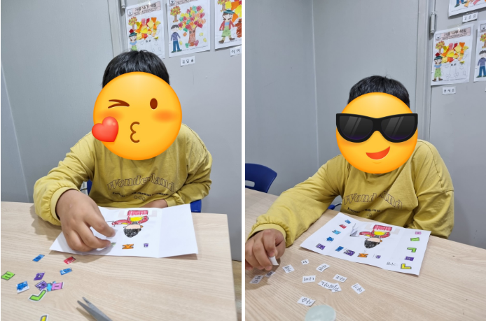 자/모음 카드를 이용해 자기 이름을 만들기도 하고 좋아하는 단어를 만들고 친구들에게 소개를 해주기도 했습니다~