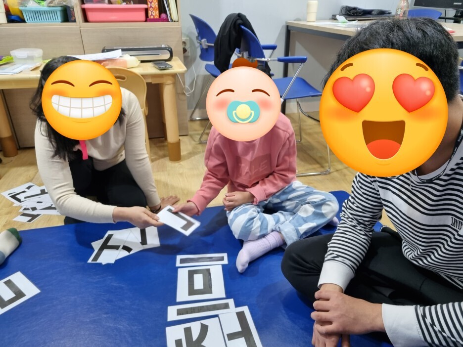 규칙에 대해 설명해주니 'ㄱ', 'ㄴ', 'ㄷ' 을 신중하게 찾고 있네요ㅎㅎ