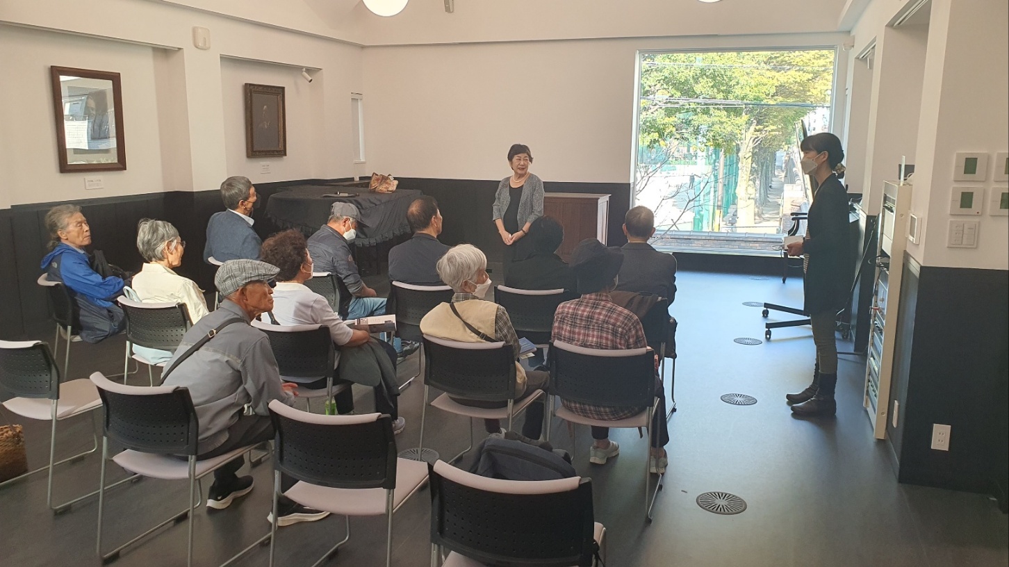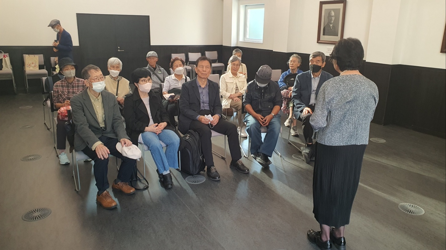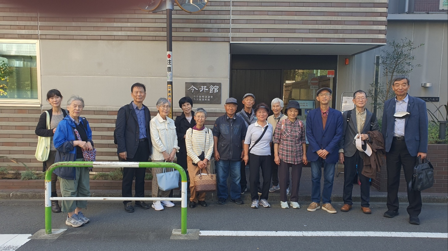 특히 성서강당은 그리 크지 않은 공간이지만, 넓은 창문으로는 공원의 가을 풍경이 비치고, 우리무라 선생, 야나이하라 선생의 사진이 나란히 있어 그 옛날 가시와회 학생들의 진지한 단체사진, 지유카오카 집회의 사진이 생각나 가슴이 두근두근했다. 부디 이곳이 앞으로도 복음의 센터가 되기를 기도하며, 이마이관교우회의 발전을 빌었다. 현 이사장이신 가노 다카요 씨의 친절한 설명을 들었다.