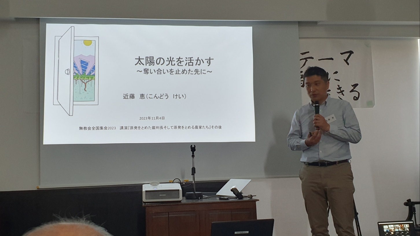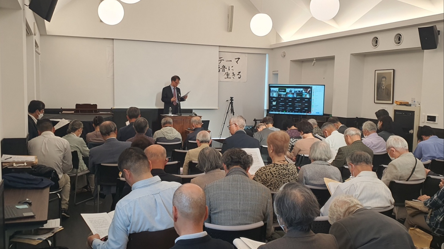 아직도 교통사고 후유증으로 보행이 불편하신 반나이 무네오 선생의 개회인사로 집회가 시작되었다. 온라인 참가자도 상당수 있어서 집회는 성황을 이루었다.
