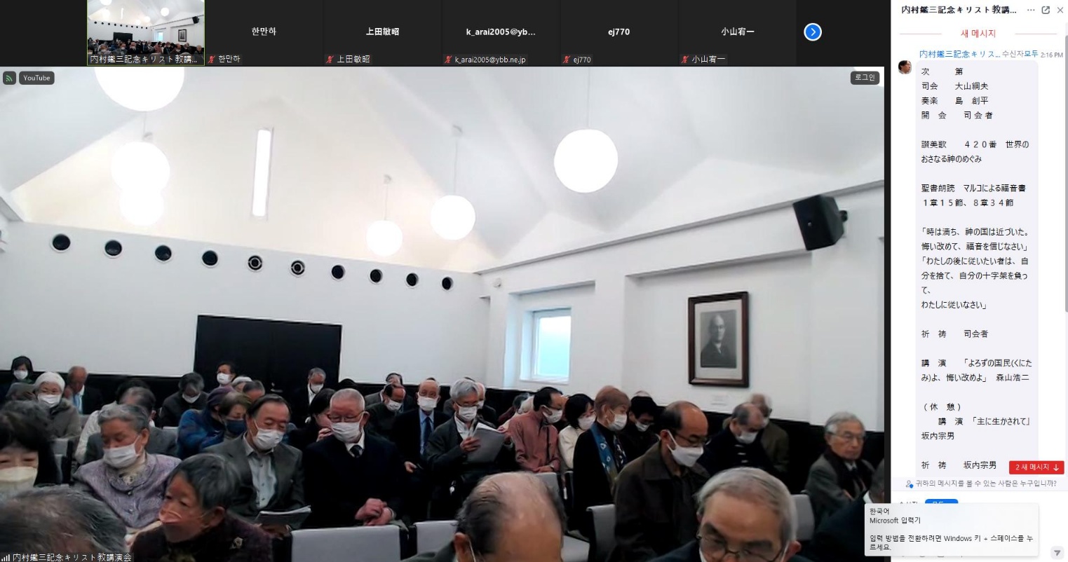 정말 많은 분이 참여하여 놀랐습니다. 성서강당을 꽉 채운 청중들이 대부분 어르신들이었는데, 꽤 많은 젊은이들이 있었습니다. 온라인으로도, 우리를 포함하여 20명 남짓한 분들이 참여하고 있었습니다. 특별히 '조현식'이라는 한국인 이름이 있어 누구인가 궁금했습니다. 집에서 편안하게 두 분의 이야기를 들을 수 있어 감사했습니다.