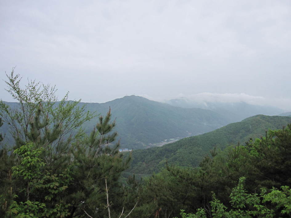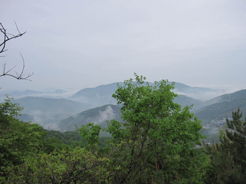 축령지맥(祝靈枝脈)이 운무사이로 어렴풋 들어나고, 동서쪽으로는 철마산과 천마산이 이어