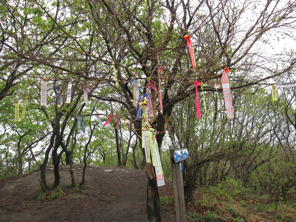 대형 정상 대리석 표지석과 가평군에서 세운 소형 대리석 표지석이 대조를 이루고,