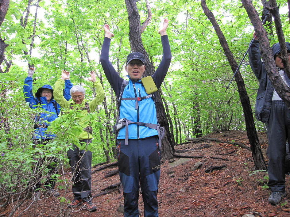 잠시후 베어스타운 하산 안부 삼거리 전에 있는 봉우리 공터에서 오늘의 주빈 김화곤 전회장의